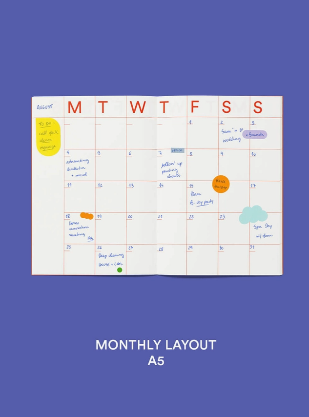 Don't sweat the small stuff. Plan your entire life with a comprehensive monthly overview, spacious enough to encompass every goal.