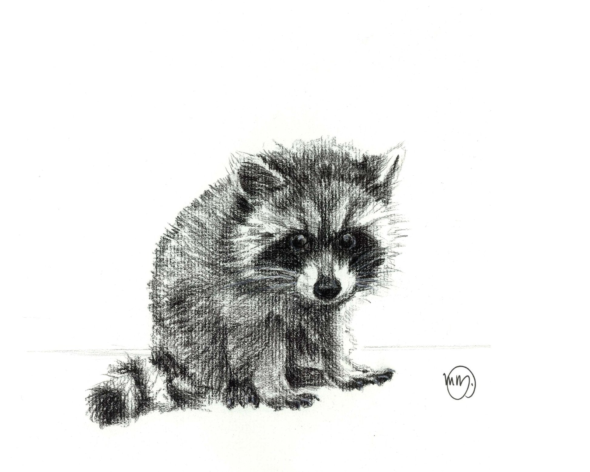 Adorable Baby Raccoon Print, perfect animal illustration for nursery or children's bedroom, this wildlife animal art brings a comforting presence.