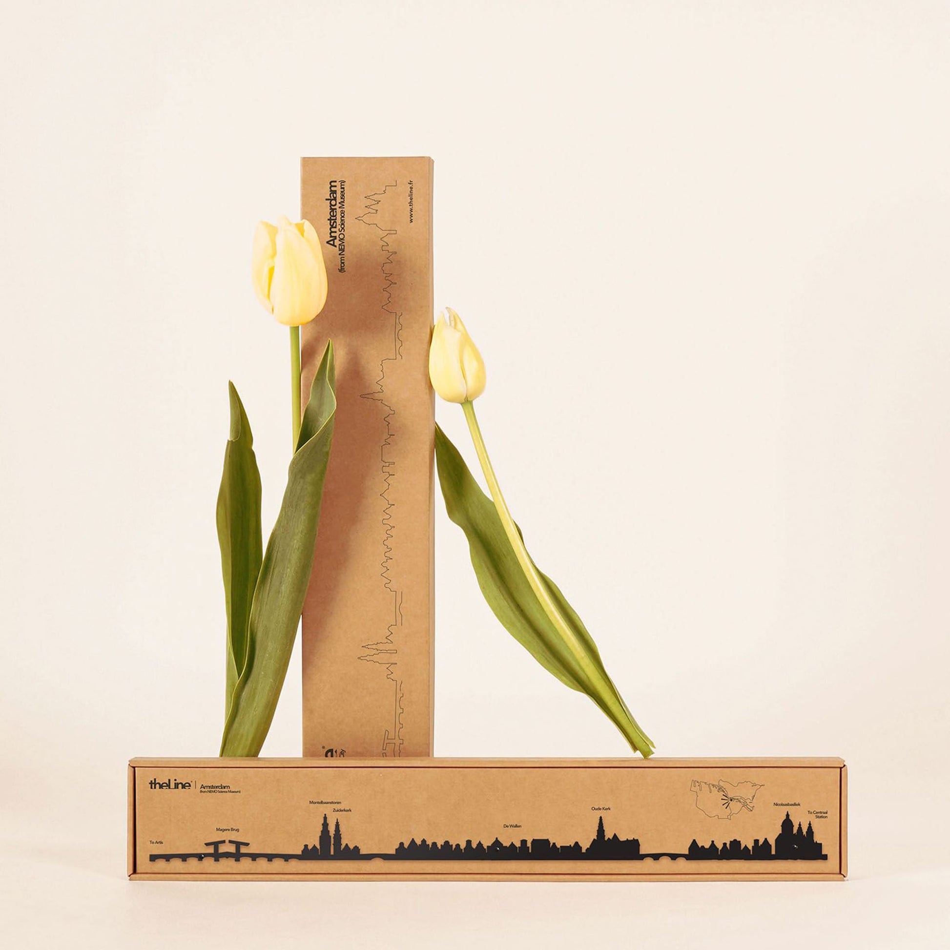 The Amsterdam Line, offered in a 50 cm version, captures the essence of Amsterdam's iconic skyline and landmarks in a minimalist silhouette. This art piece beautifully represents the city's unique architecture and canals, making it an ideal decorative element for those who cherish the charm and history of Amsterdam.