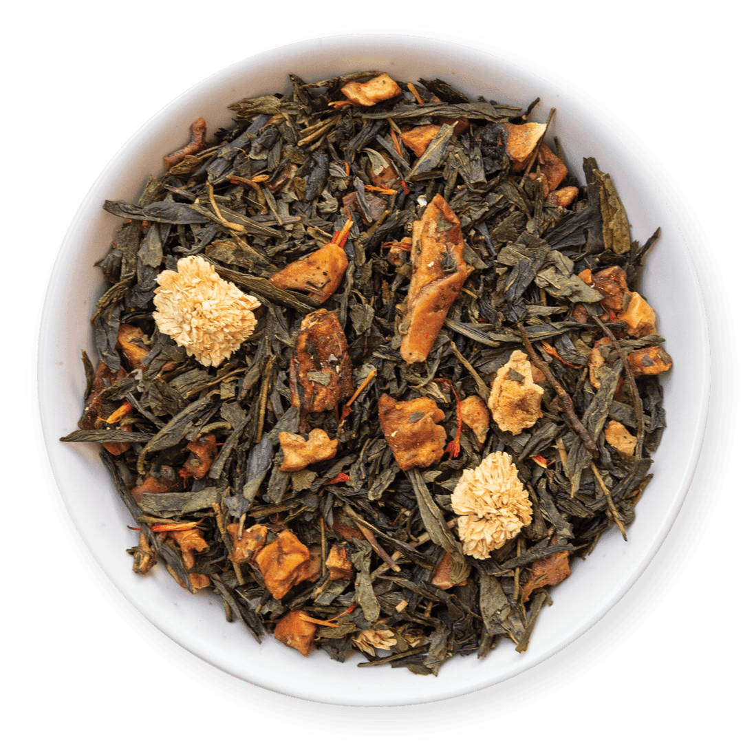Apple Crumble is a green tea blend with sweet notes of real apple and cinnamon spice. It reminds us of fresh baked apple crumble with a scoop of vanilla ice cream - no sugars added!