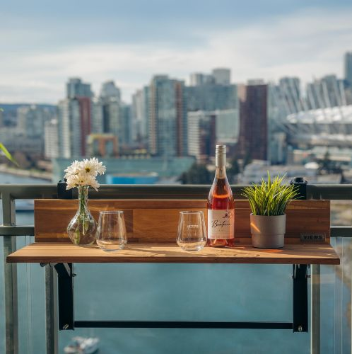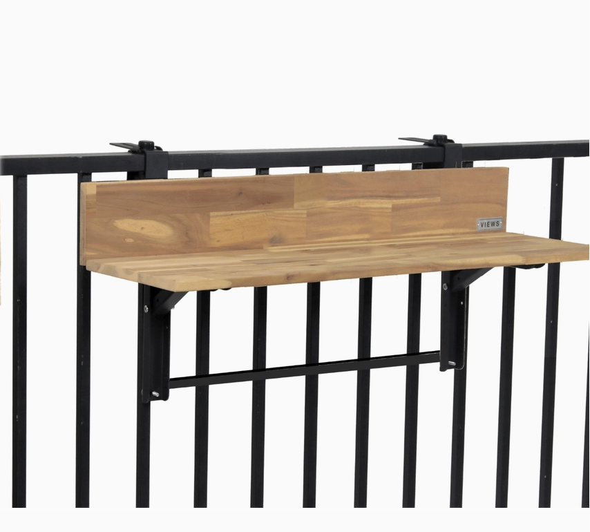 The Views Balcony™ Bar Mini is transforming outdoor patio furniture for small apartment outdoor spaces. It is our most universal-fitting balcony bar to fit virtually all types of railings. This bar table takes up zero floor space with our unique bracket system, comes flat-packed, and is easy to assemble for consumer ease. Fits dinner plates and laptops easily for all occasions outdoors.