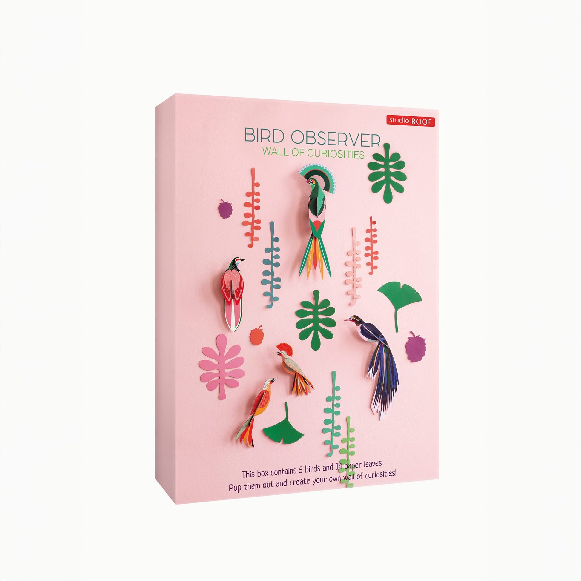 The Bird Observer by Studio Roof invites you to embark on a delightful journey of exploration and creativity. This unique 3D art kit transforms your space into a vibrant world of nature, featuring an array of colorful birds and lush paper leaves that have journeyed from tropical rainforests to your home. With five beautifully designed birds and fourteen pop-out leaves, this set allows you to build an enchanting display on your walls, inspiring curiosity about the diverse fauna and flora found around the globe.
