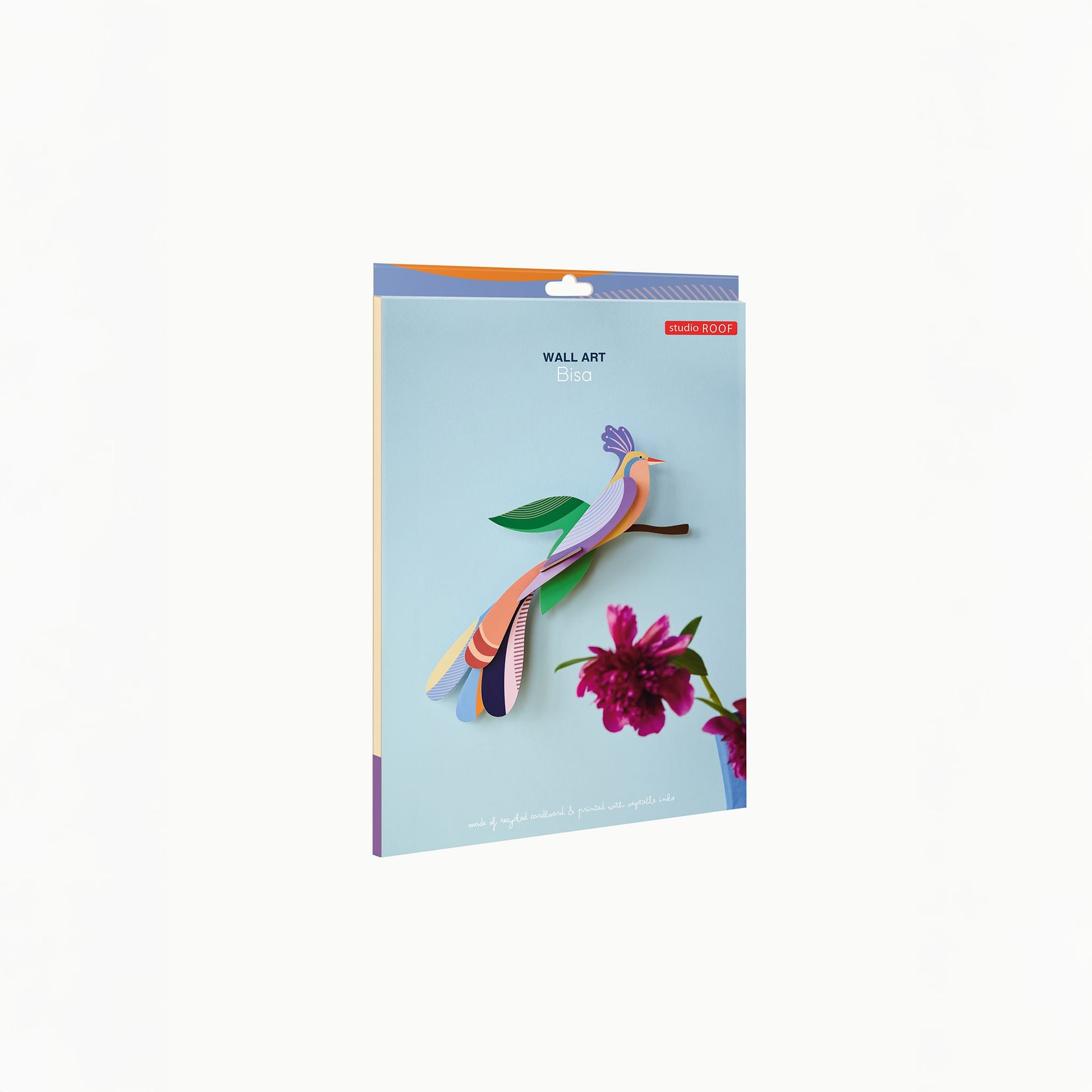 The Bisa by Studio Roof is a stunning 3D wall art piece that brings the vibrant beauty of nature into your home. Crafted from recycled cardboard and printed with vegetable inks, this bird of paradise ornament adds a colorful and eco-friendly touch to any space. Its striking graphic patterns and intricate design make it a unique and captivating decorative piece, perfect for those who appreciate nature-inspired art.