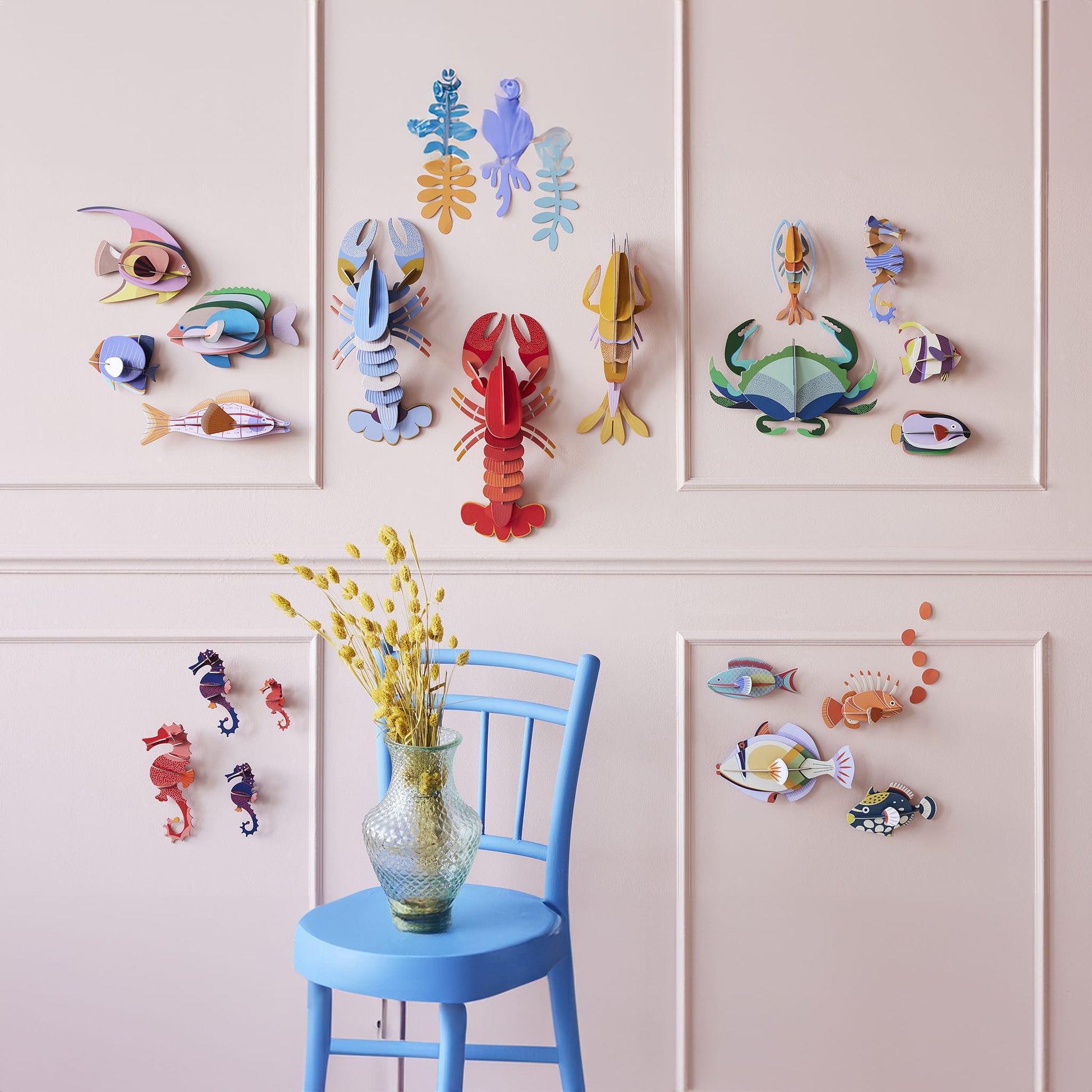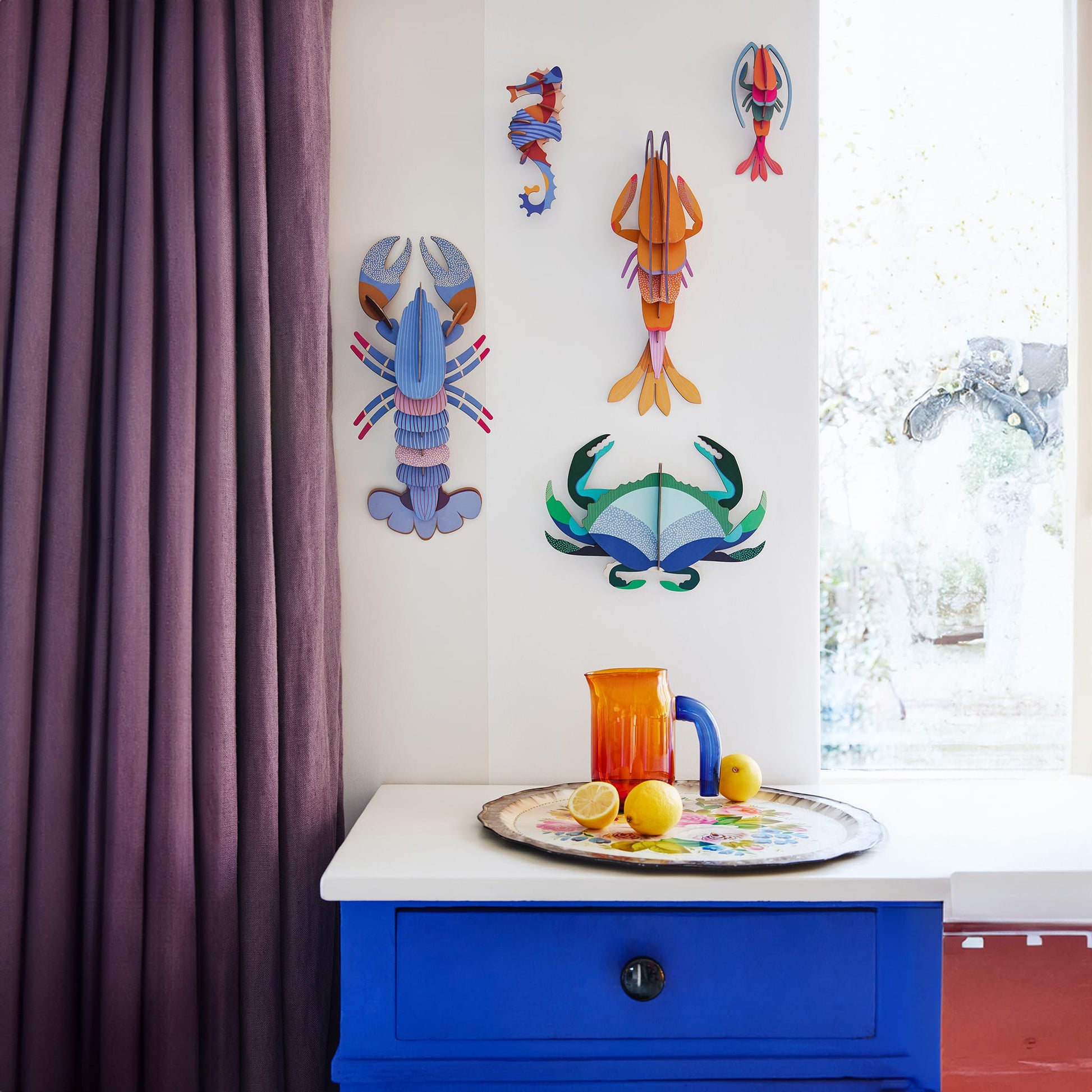 Made from recycled cardboard and printed with eco-friendly vegetable inks, the Blue Ringlet Seahorse reflects Studio Roof’s commitment to sustainability while offering a creative, eye-catching decor option. It arrives flat-packed and is easy to assemble, making it a fun, hands-on experience for all ages. Once completed, the seahorse measures 7 x 3.5 x 19 cm (2.7" x 1.4" x 7.5"), making it a unique, compact decoration for any wall. Perfect for Canadian homes, this piece combines artistry with environmental consciousness, bringing the magic of the ocean into your living space.