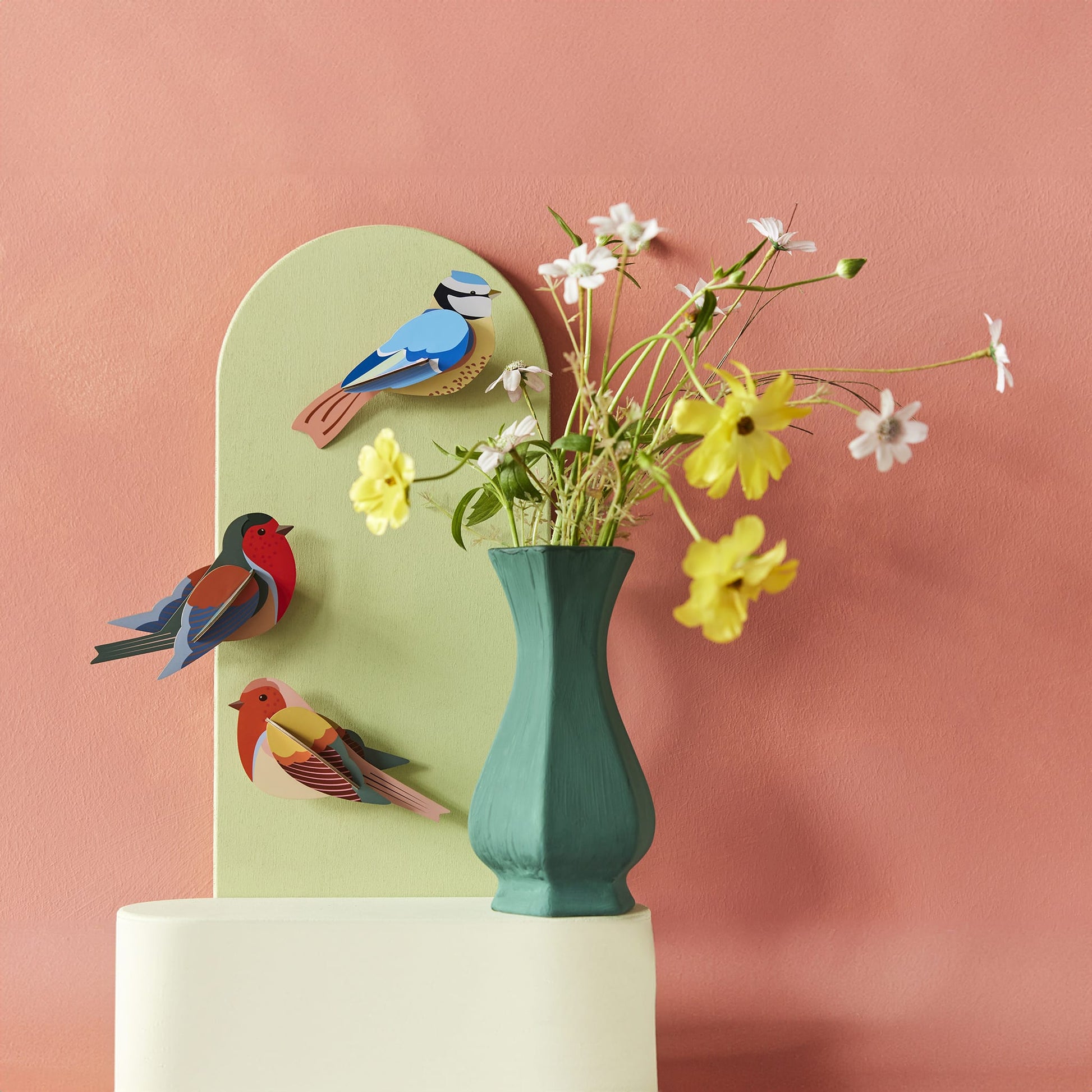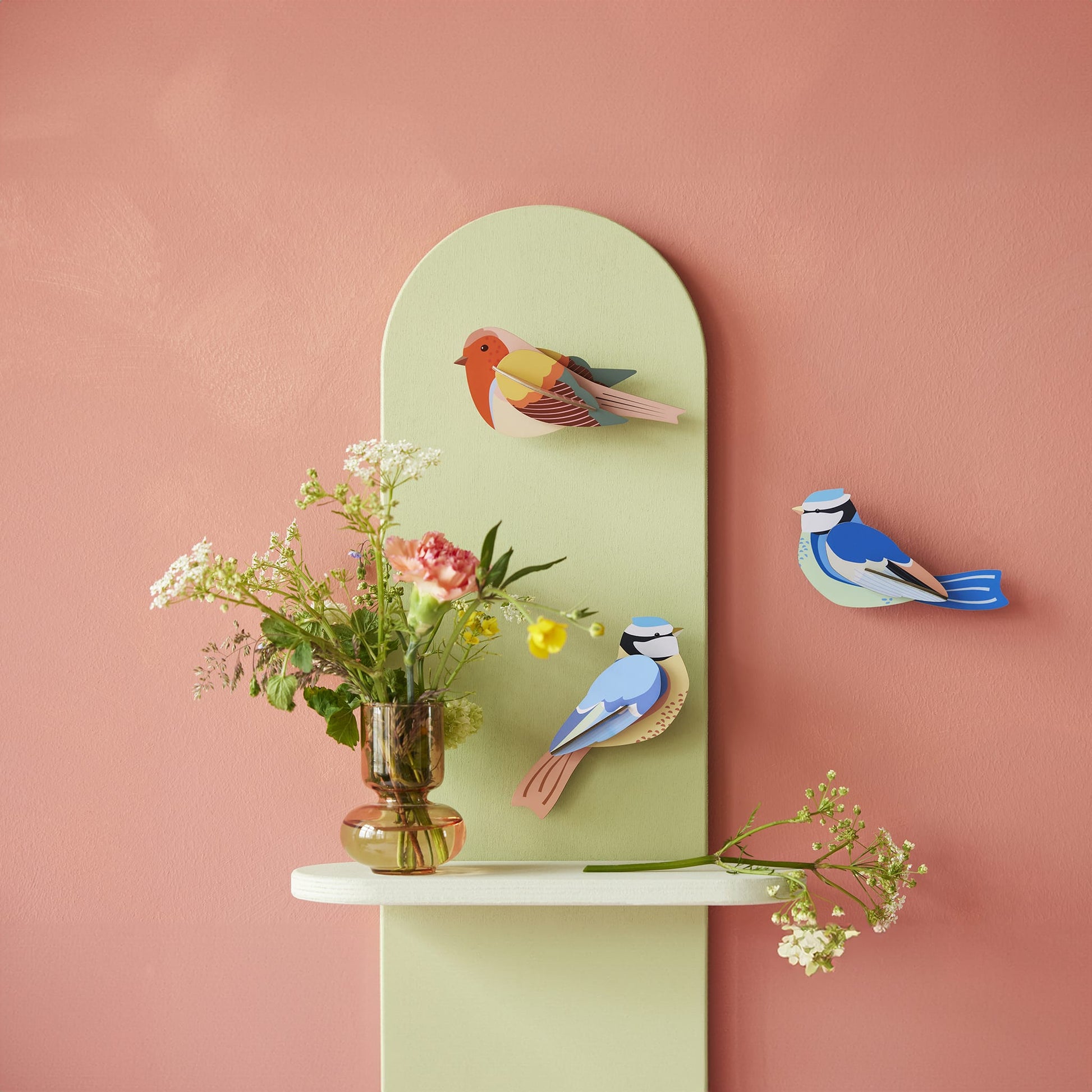 The Blue Tits by Studio Roof bring the charm and color of garden birds into your home in a unique, eco-friendly way. Inspired by the lively, fluttering movements of birds pecking at crumbs and then soaring away, these 3D cardboard creations allow you to enjoy their beauty permanently on your walls.