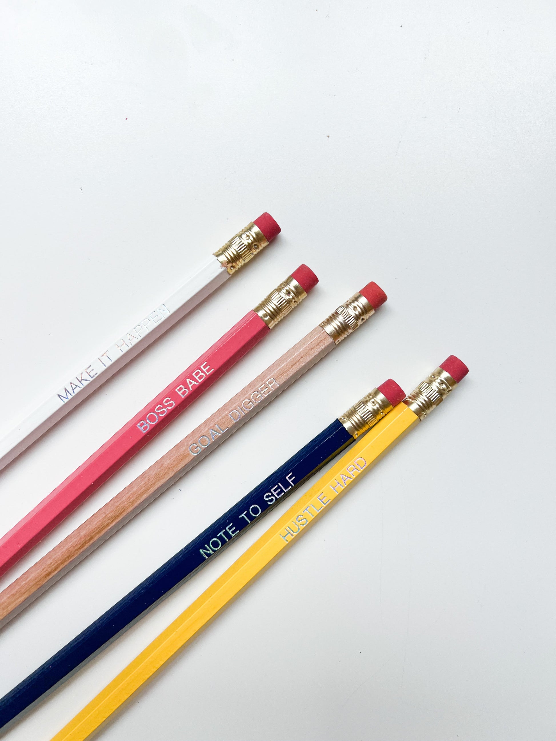 - 5 gold foiled imprinted hexagon HB #2 Pencils