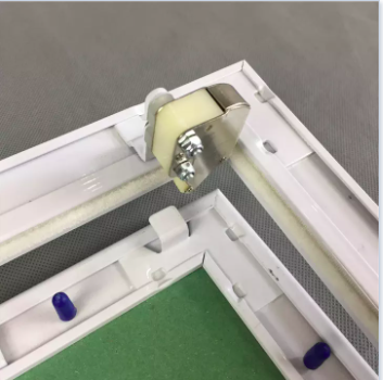 Detachable Doors For Easier Access With Safety Cord - The product is equipped with minilatch springs clips, so the access door can be opened and closed after it is pressed and removed easily. This allows for easy access to ceiling inspection openings and cavities with gas, water and electricity meters or in-house fire plugs. Safety cord attached to detachable door for servicing.