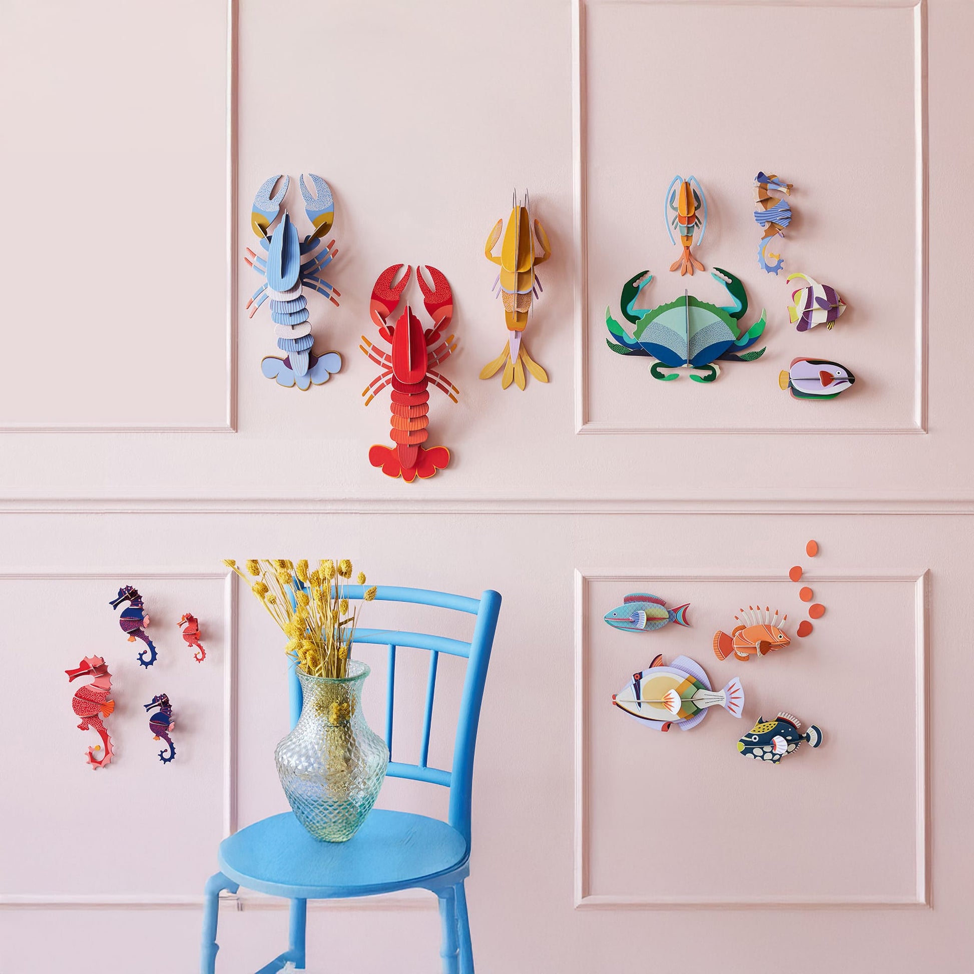 Dive into the vibrant world of the ocean with the Clown Triggerfish by Studio Roof. This striking 3D wall art captures the bold, colorful beauty of one of nature's most fascinating underwater creatures. Crafted from recycled cardboard and printed with eco-friendly vegetable inks, this unique piece celebrates both art and sustainability. Perfect for adding a playful, nature-inspired touch to your home, the Clown Triggerfish offers a fun, hands-on assembly experience.