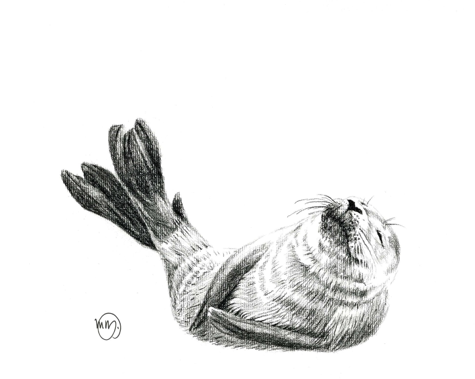 Adorable Baby Seal Print, perfect animal illustration for nursery or children's bedroom, this wildlife animal art brings a comforting presence.
