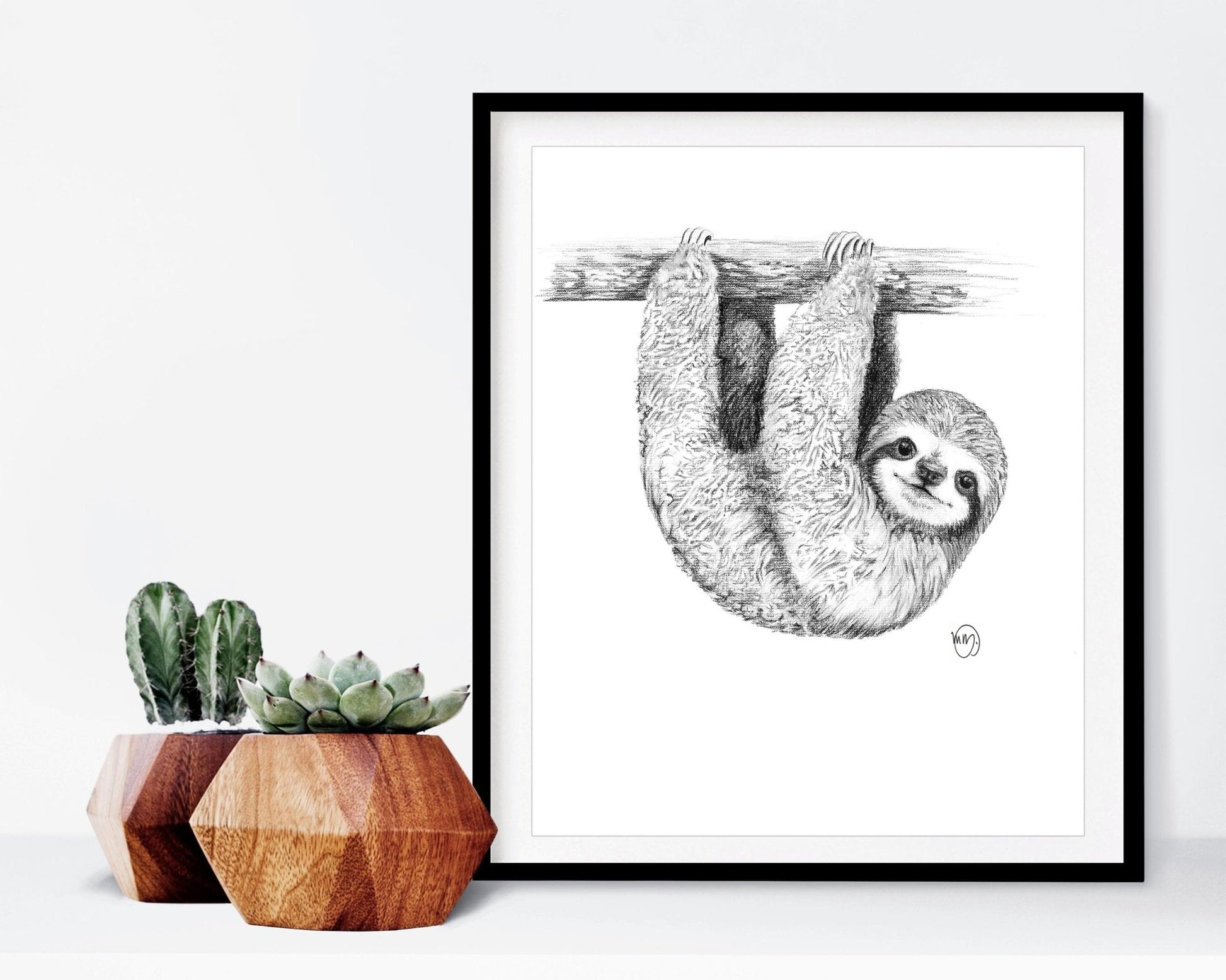 Adorable Sloth Print, perfect animal illustration for nursery or children's bedroom, this wildlife animal art brings a comforting presence.