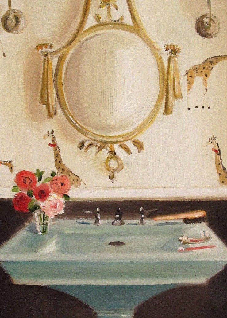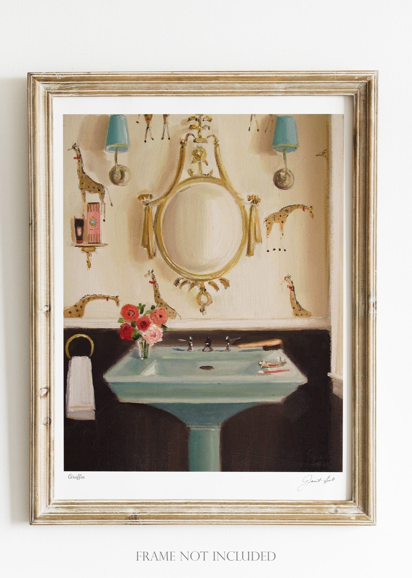 This Giraffes Art Print wallpaper print is perfect for adding a touch of nature to your bathroom decor.