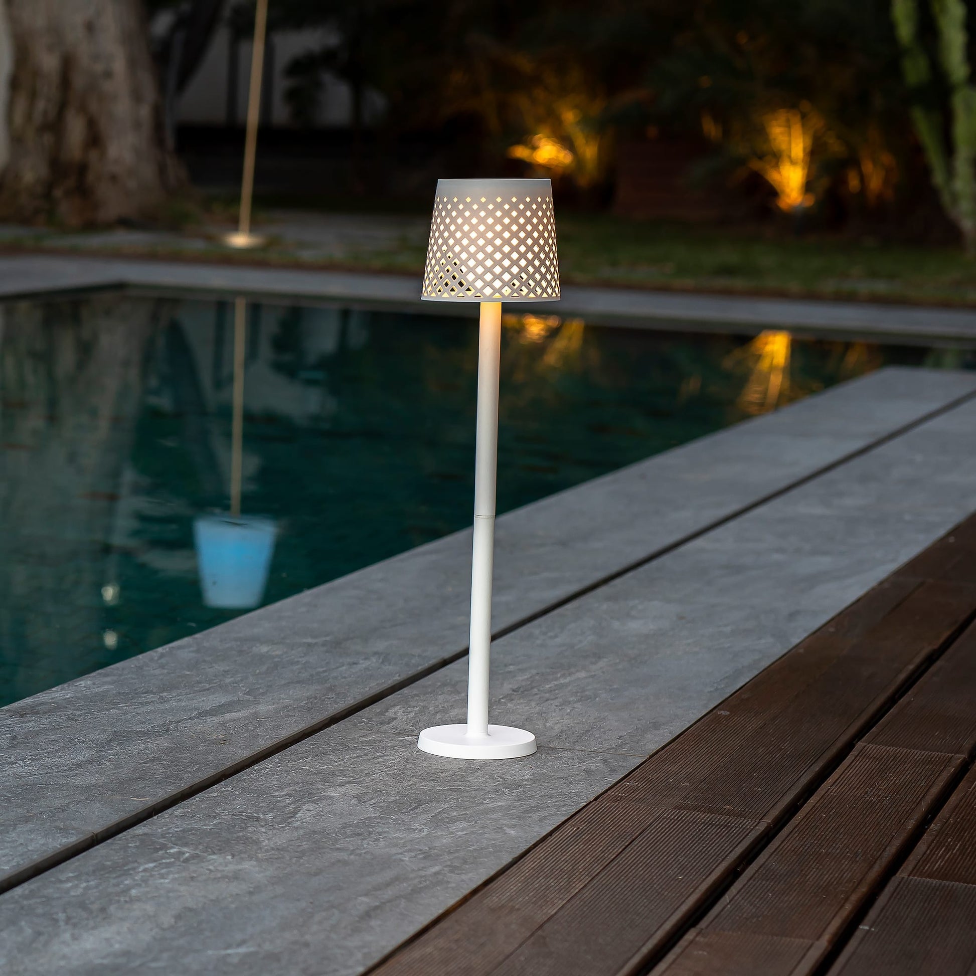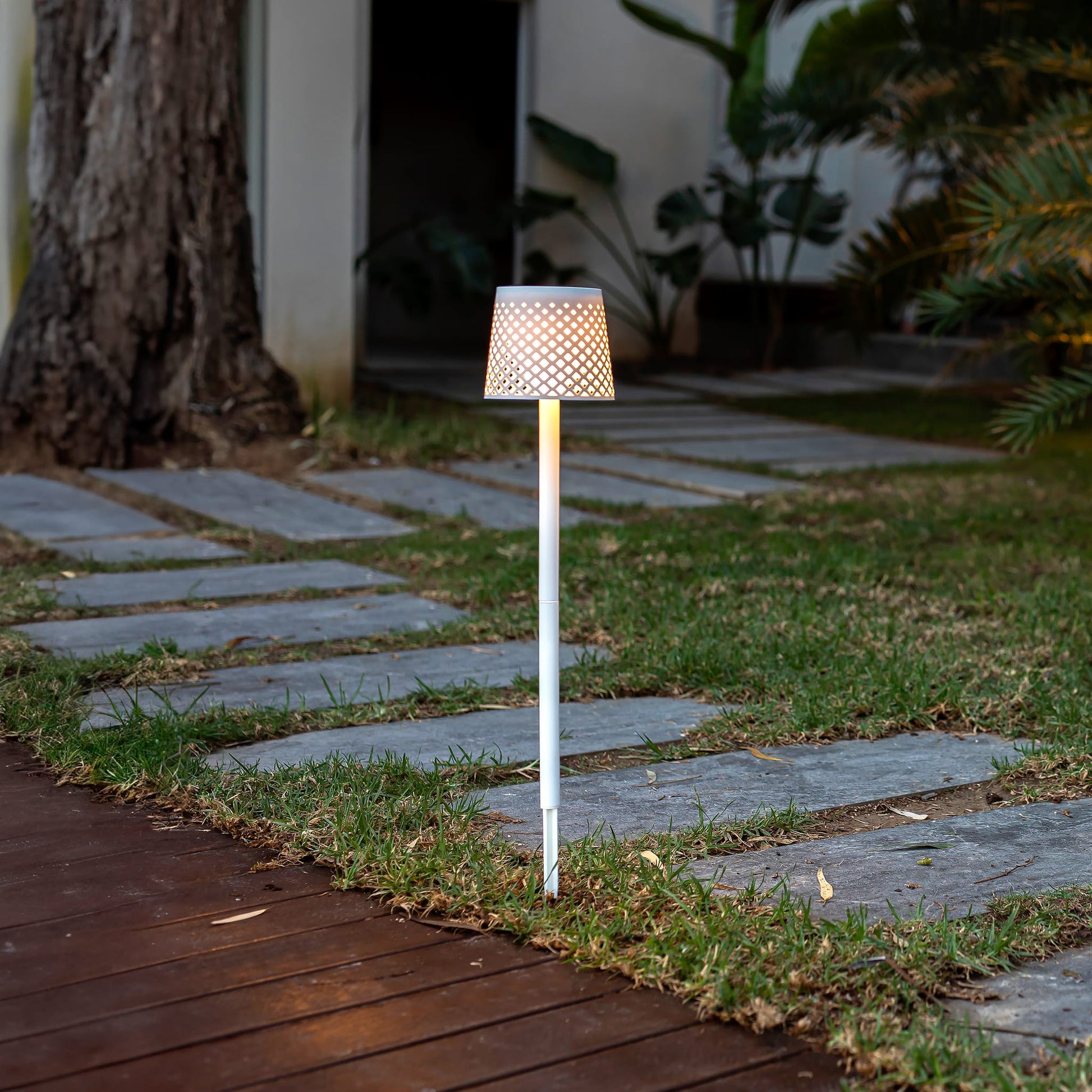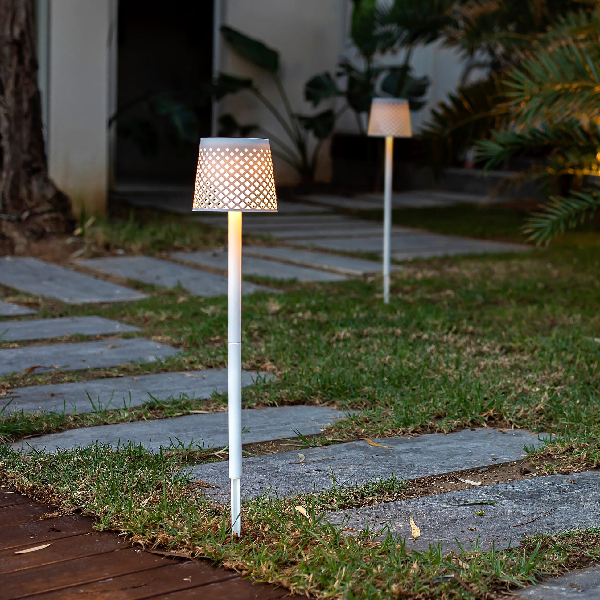 The Greta solar lamp is a game-changer in garden lighting, boasting 5 lamps in 1. This innovative product can transform into a floor lamp, table lamp, two pikes at varying heights, or a wall lamp with ease. You simply need to assemble the desired version. It features two switch-on modes, manual or automatic, and can be charged via solar light or micro USB.