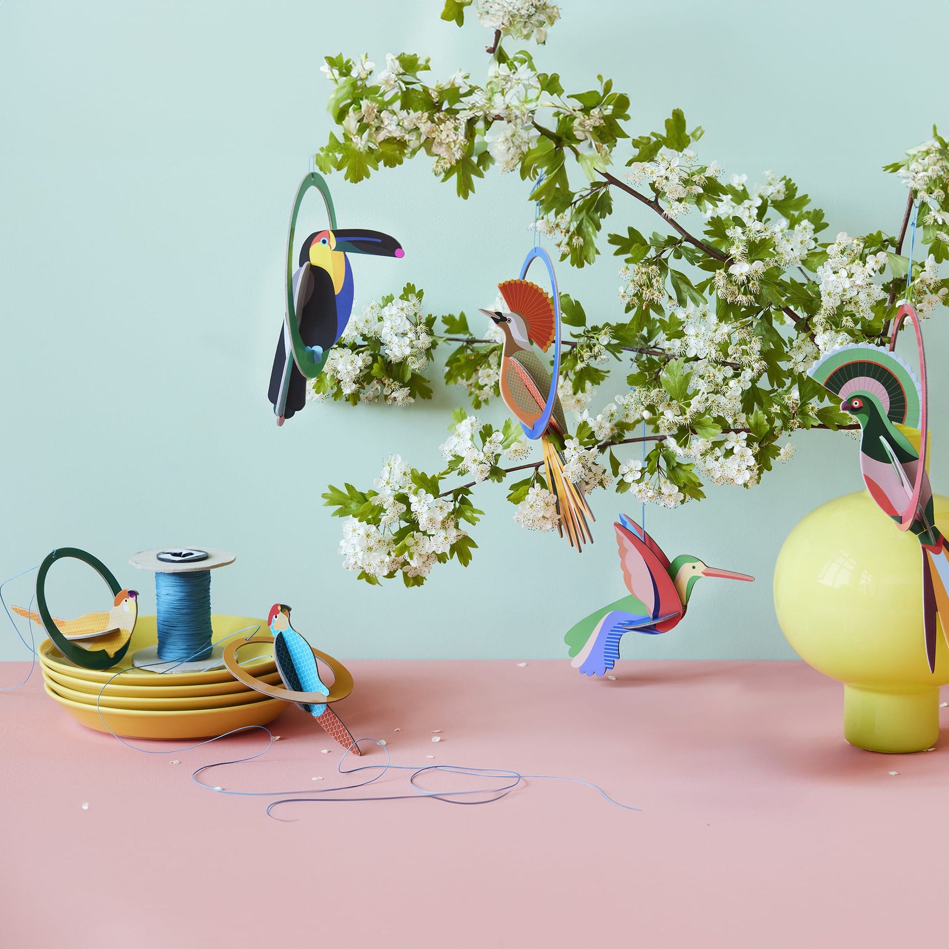 The Hummingbird by Studio Roof is more than just a card—it's a delightful keepsake and small gift all in one. Crafted from recycled cardboard and printed with vegetable inks, this 3D nature-inspired ornament is easy to assemble and comes flat-packed with an envelope, a greeting card, and a thread for hanging. Whether it’s hung from a branch, a lamp, or any special spot in your home, the Hummingbird adds a touch of charm and elegance.