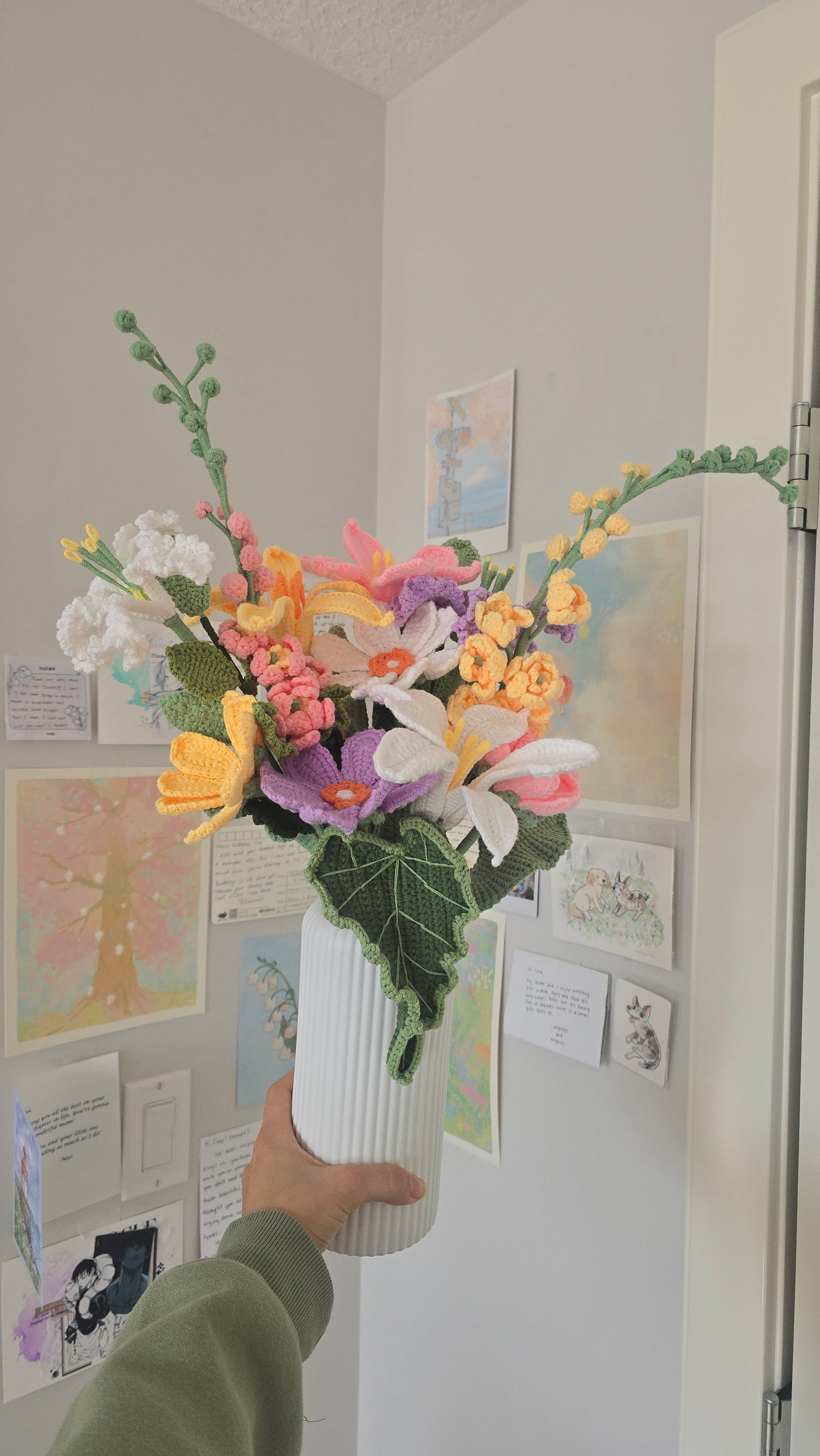 Note that due to color differences and yarn availabilities, color may vary slightly! Each flower is carefully handmade by me, and may also vary slightly in how they look!
