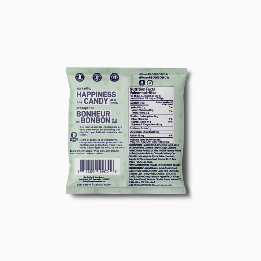Here at La boîte à bonbons, we are committed to supporting causes that speak to us, and sea turtles are no exception! Discover delicious little turtles with a soft heart that melts in your mouth, and that's all it takes to help us protect little sea turtles! Every time you eat a little gummy, a turtle says thank you, thanks to our partnership with 1% for the Planet.