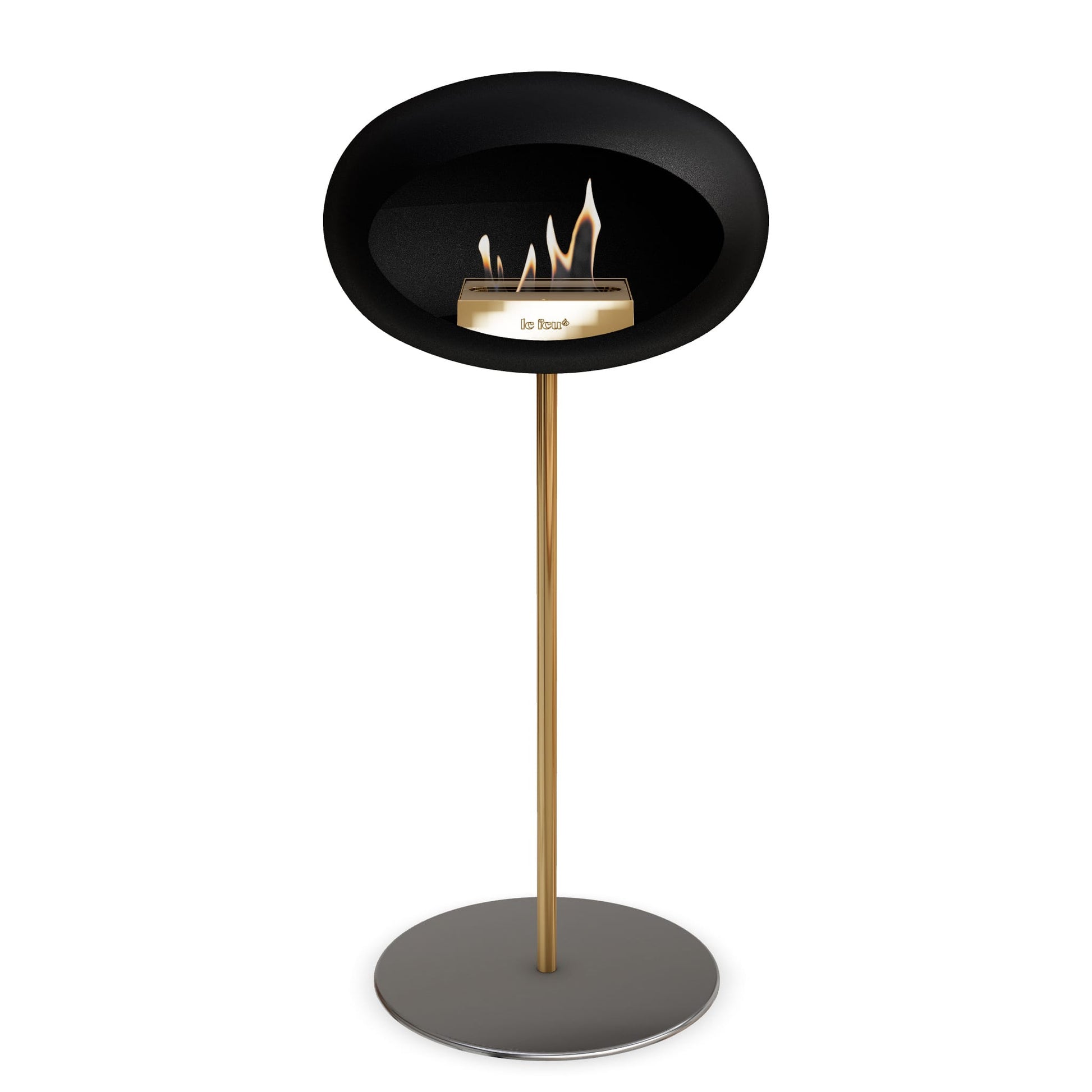 This freestanding model stands on a sleek pole and round steel base, offering a clean vertical presence without taking up much floor space. Whether you're styling a city condo, a modern loft, or a chalet-inspired living room, the Steel High in Black delivers real flame ambiance with a strong design edge.