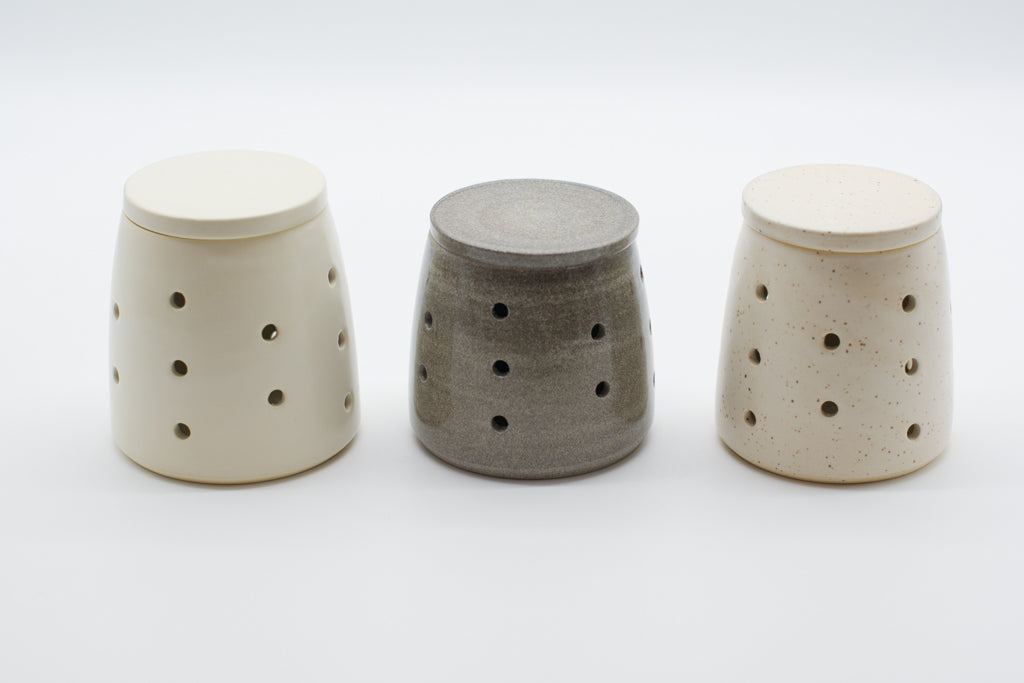Leah Georgina, a Latin Canadian of Dominican Republic descent, is a self-taught, small-batch production potter who operates from her home studio in Bath, Ontario. With a contemporary approach to wheel-thrown pottery, her functional pieces blend clean, simple design with organic textures and forms, resonating with a modern audience. Her finished works often embrace the natural texture and colour of high-fired stoneware, keeping the surface raw or partially glazed in clear or matte white.