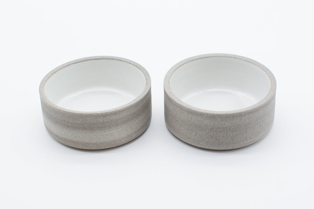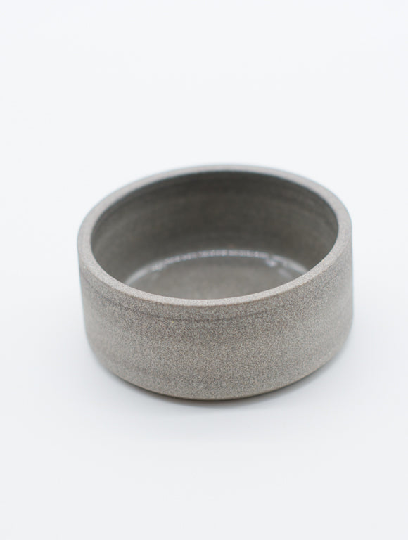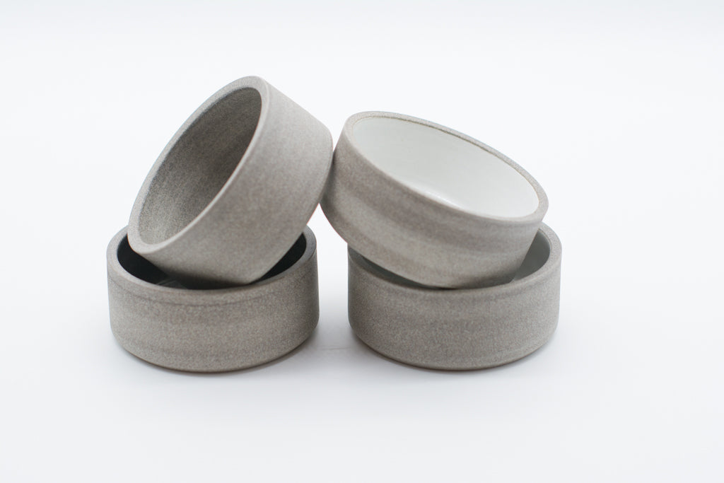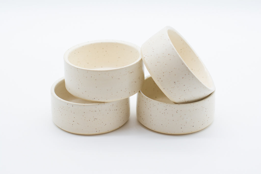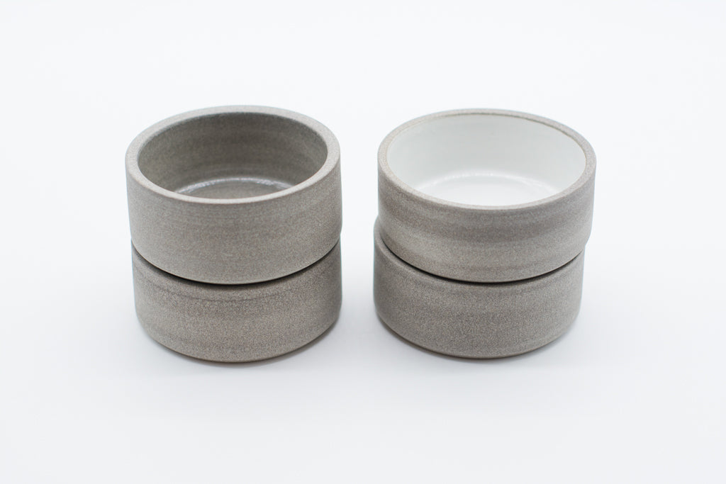 Matte white speckled, raw granite with clear glaze interior, raw granite with gloss white interior (4.5" wide x 2" tall)