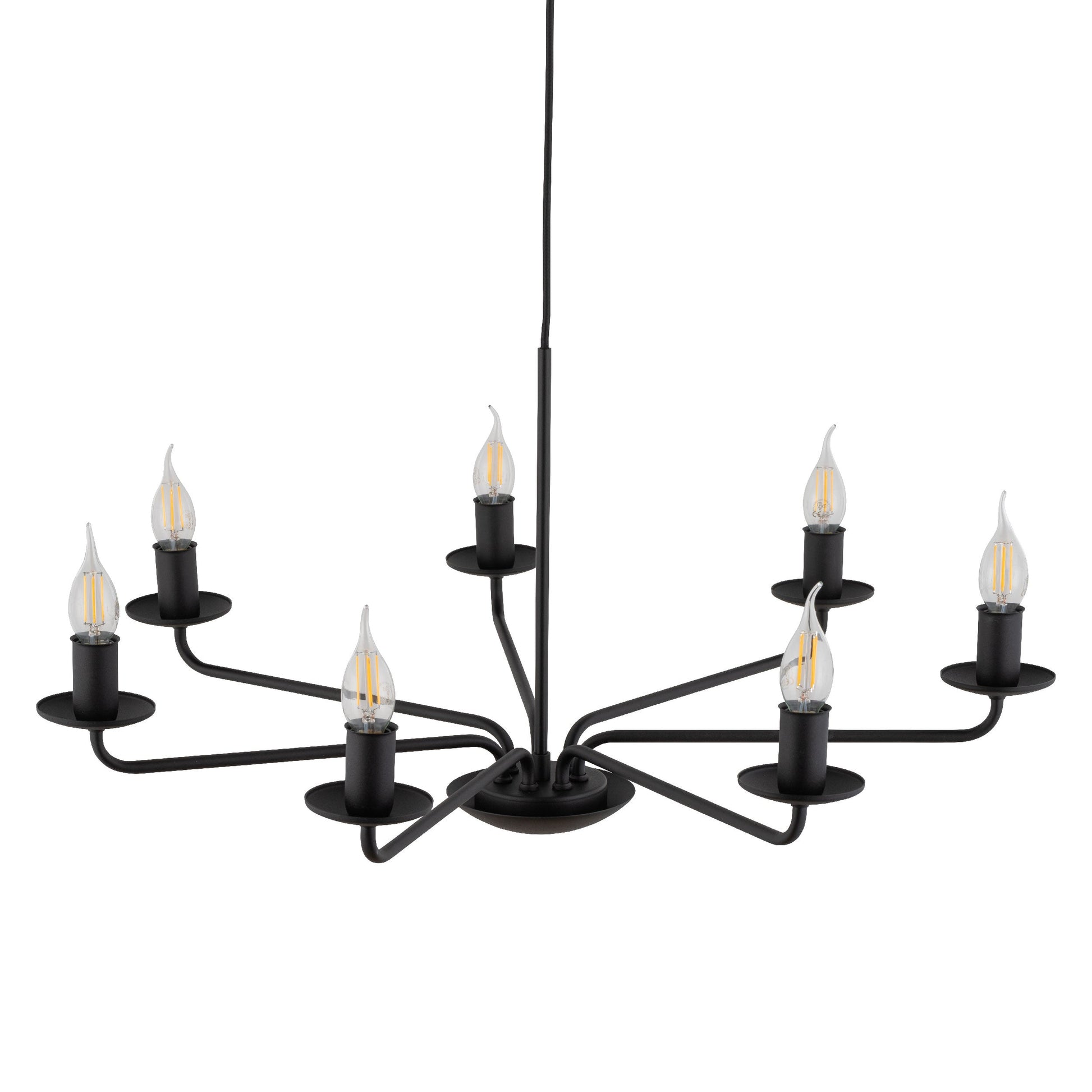 Create a unique atmosphere in your space with the LIMAL collection. Featuring an original design that suits both modern and classic interiors, these lamps resemble a classic candlestick. The chandelier showcases decorative bulbs mounted on a sleek black or white metal frame with seven gracefully curved arms. Perfect for elegant living rooms or beautiful bedrooms, this sophisticated light fixture effortlessly blends timeless charm with contemporary style.