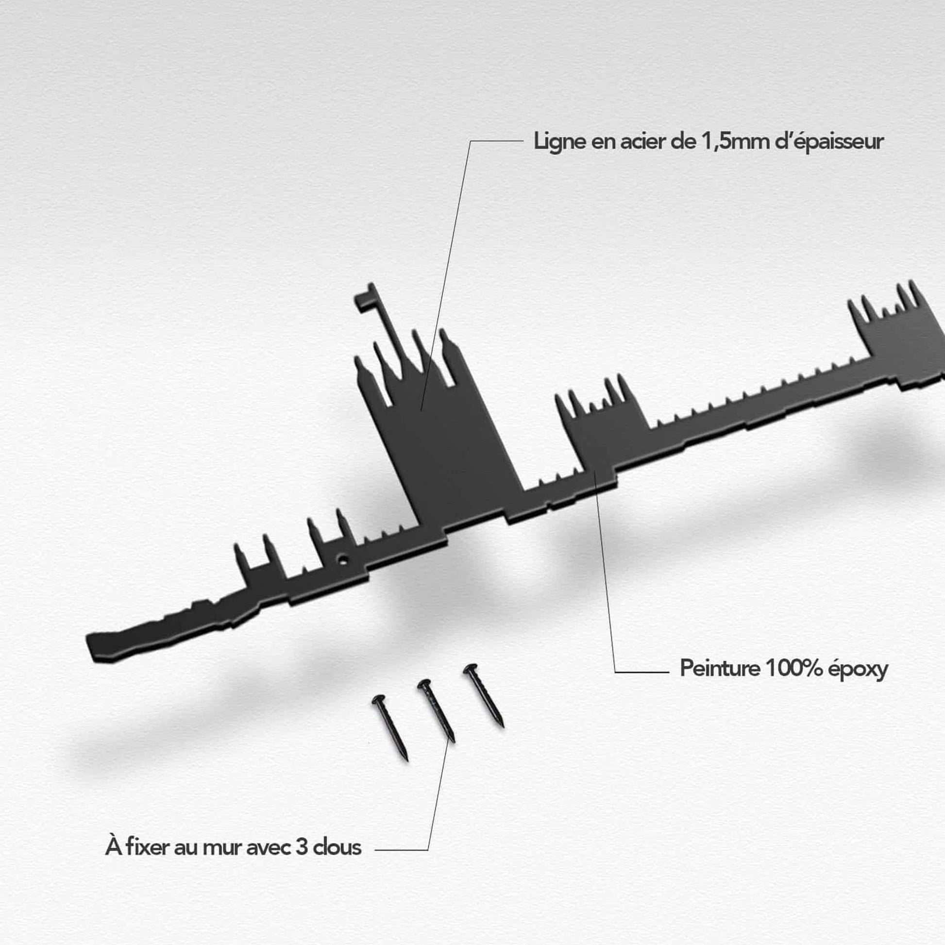 The London Line beautifully captures the city's iconic skyline, available in various sizes (19 cm, 50 cm in both black and golden, and 125 cm). This collection embodies London's rich history and architectural marvels, offering a stylish and sophisticated tribute to the city's landmarks. Perfect for London enthusiasts wishing to add a touch of elegance and urban charm to their space.