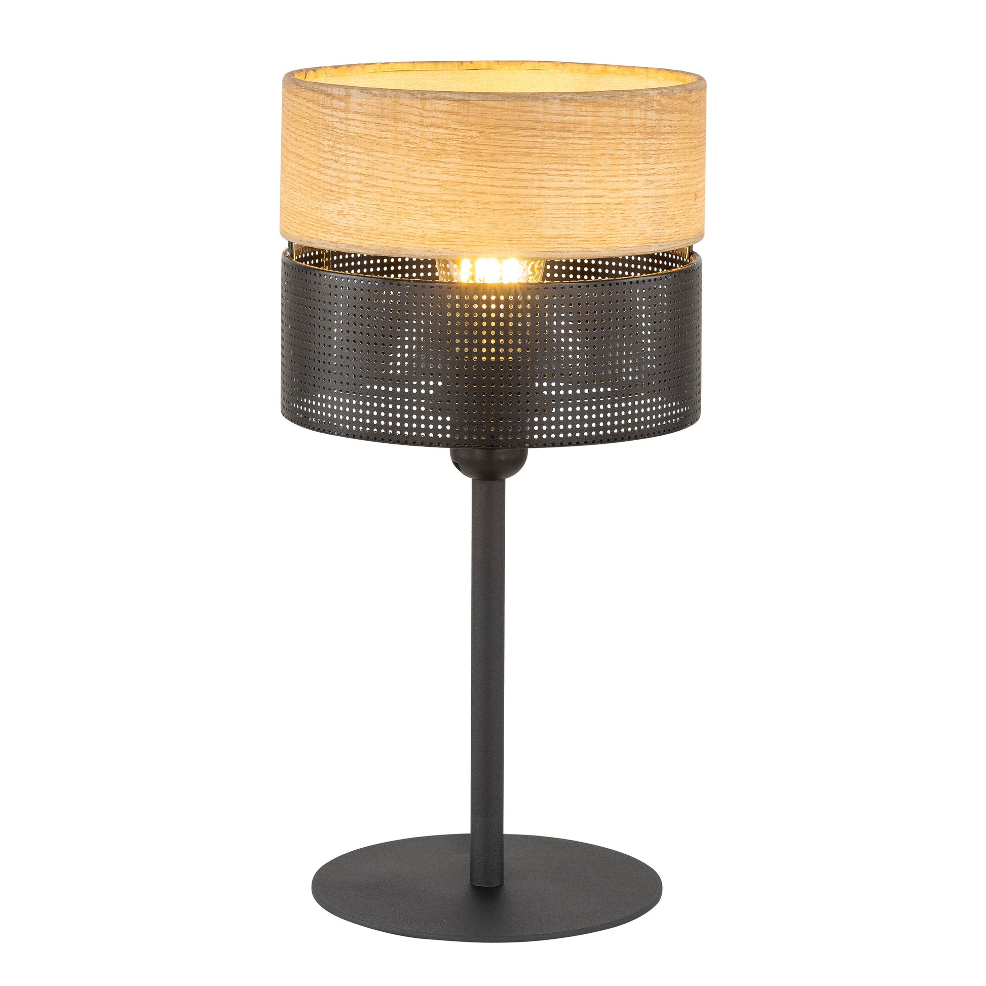 The Nicol lamp collection offers a refined and harmonious selection of lighting options, meticulously crafted to infuse any space with sophistication and elegance. This diverse collection includes a floor lamp, bedside lamp, pendant lamp, and ceiling lamp, each thoughtfully designed to provide tailored lighting solutions for various interiors. Featuring modern black metal frames and unique lampshades crafted from modified veneer and perforated black PVC foil, these lamps create a striking and stylish pattern.