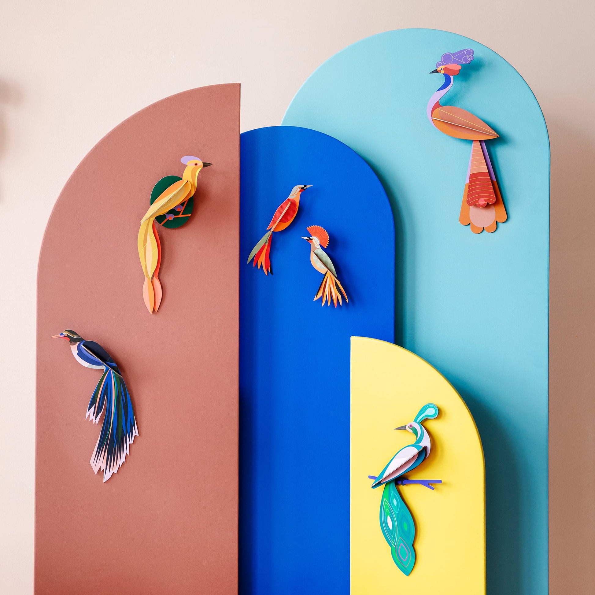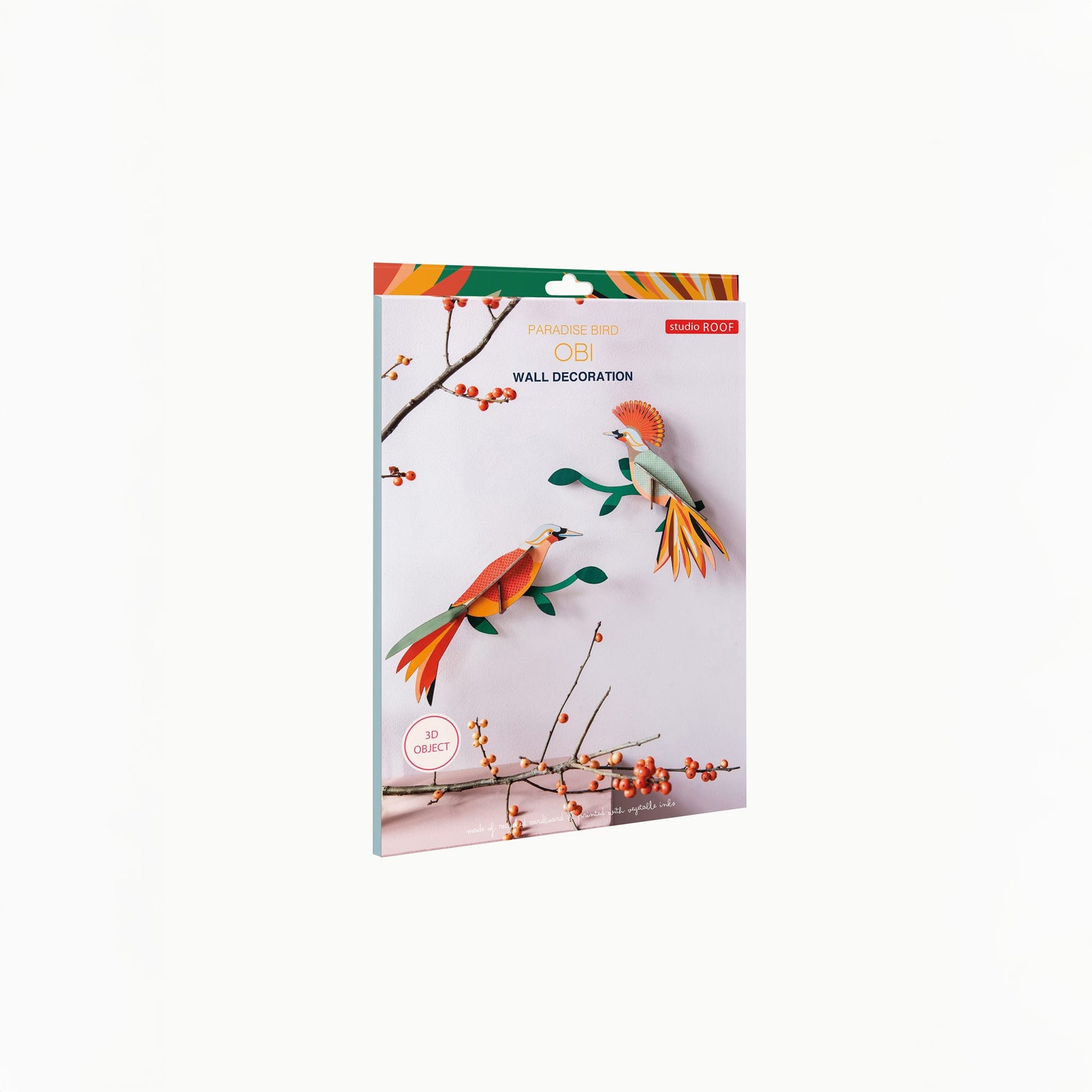 Made with sustainable materials and printed using vegetable inks, this 3D wall art is easy to assemble and comes flat-packed for your convenience. Whether you're decorating a living room, a bedroom, or a creative space, the Paradise Bird, Obi is perfect for nature lovers and those looking to add a touch of whimsy and charm to their home. Measuring 22 x 6 x 22 cm when assembled, Obi will transform any room with its colorful presence and unique design, making it an ideal piece of bird art for eco-conscious Canadian homes.