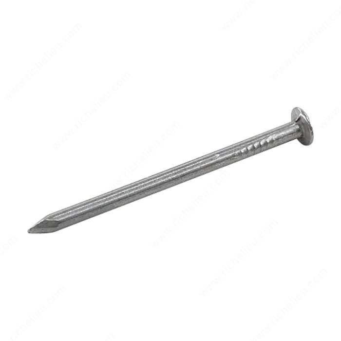 Solid, flat-headed nail for sturdy applications. Head sinks into the surface of most woods for a smooth, finished appearance. Ideal for carpentry applications in which the nail head needs to be unobtrusive.