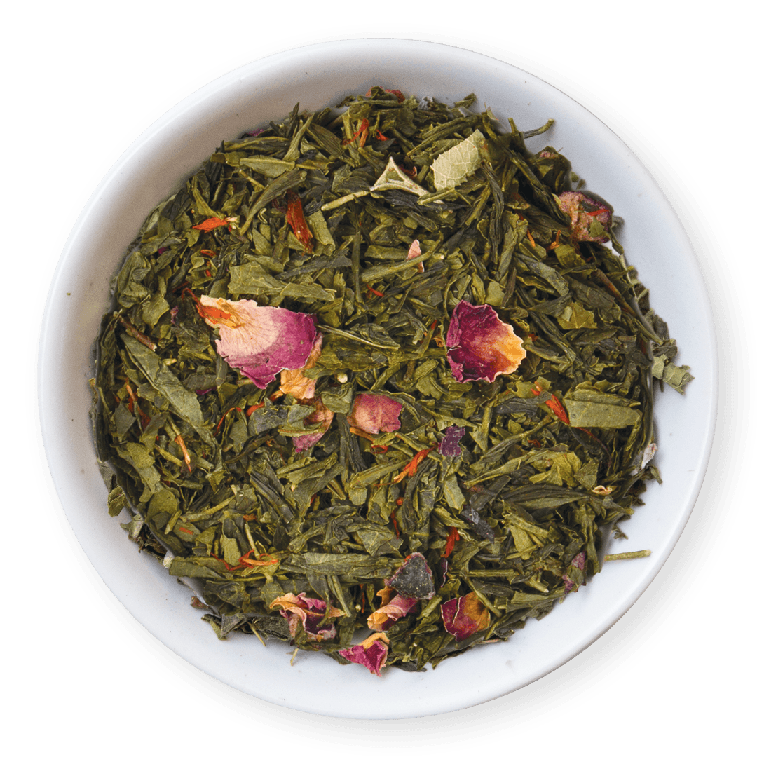 This cherry scented green tea features a fine grade organic Japanese Sencha blended with fragrant rose petals. The result is a delicious infusion with floral undertones and a lingering cherry finish.