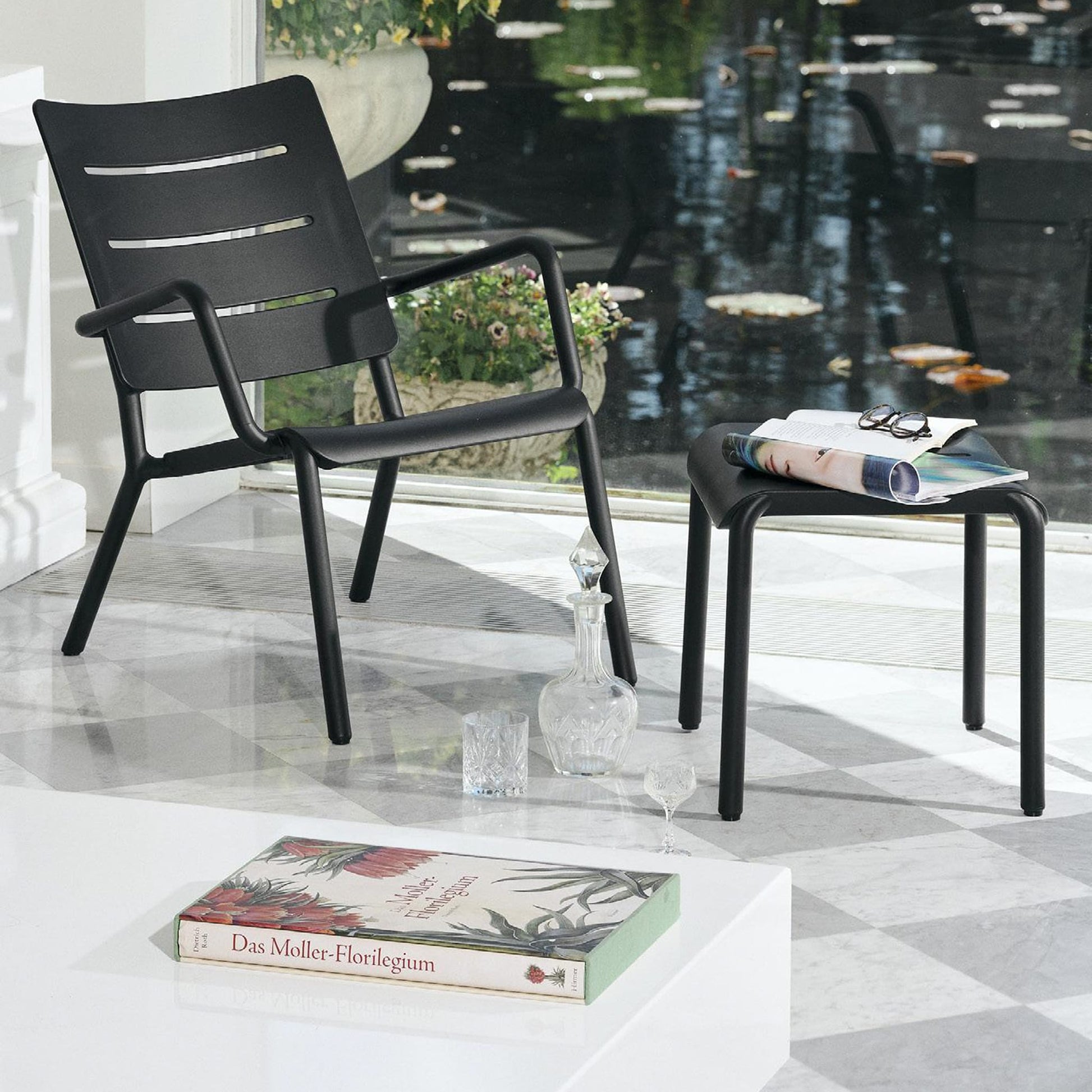 Well-designed slots allow for raindrops to drain quickly and let wind gusts flow through, functional merits that are also defining the distinctive style of this family. The diverse pieces that together form the OUTO family, provide solutions that actually suit both outdoor and indoor contexts, for example with (arm)chairs that will blend with each other or any table. Or with complementary accessories such as the connector table, that makes it possible to marriage two or more armchairs in a row for an outdoor wedding, an indoor conference, or just a loveseat.