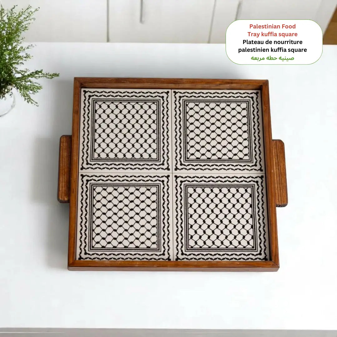 Elevate your dining with the Palestinian Food Tray Kuffia Square, featuring traditional Kuffia design and durable construction. Perfect for serving mezze, desserts, and main dishes. Made with quality materials and crafted to celebrate Palestinian heritage and culture.