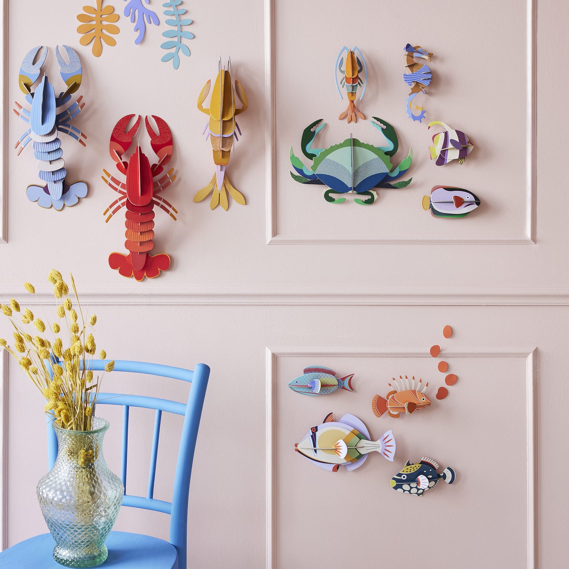 The Parrotfish by Studio Roof brings the vibrant colors and energy of the underwater world into your home. Inspired by tropical fish, this 3D wall art piece captures the beauty and movement of ocean life. Made from recycled cardboard and printed with vegetable inks, it combines eco-friendly design with a captivating aesthetic.