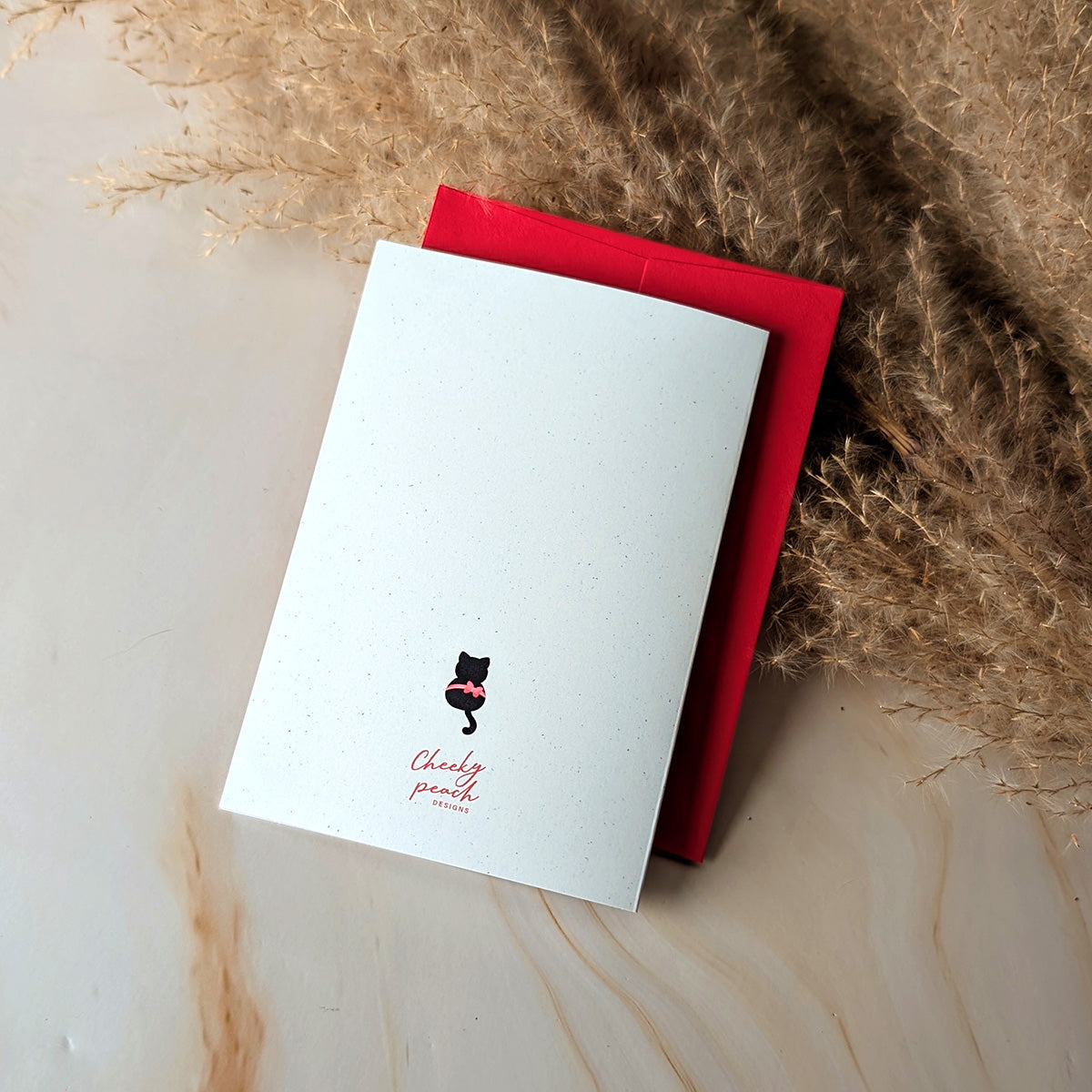 Send a dose of holiday cheer with our Pawsitively in the Holiday Spirit Cat Card, featuring three festive cats ready to celebrate! This adorable illustrated card is perfect for friends, family, or anyone who loves a little holiday spirit. With a blank inside, you have plenty of room to write your own special message.