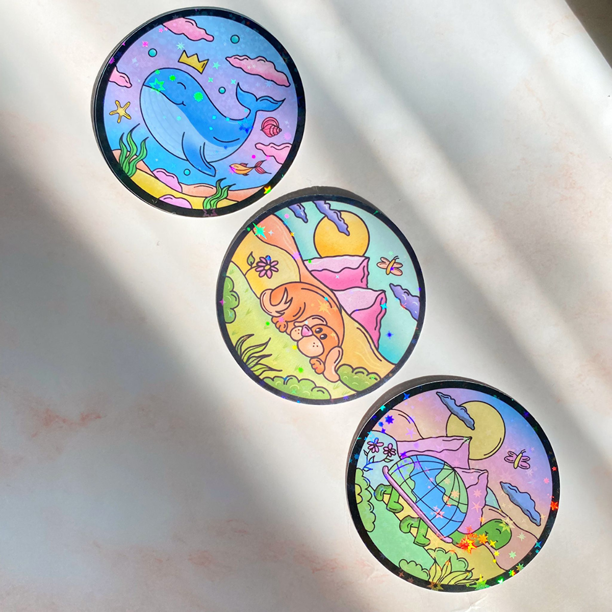 This 2.5" sticker is perfect for decorating your laptop, phone case, water bottle, or any other smooth surface you desire. The durable material is resistant to water and UV rays, ensuring that it maintains its sparkle and beauty for a long time to come.