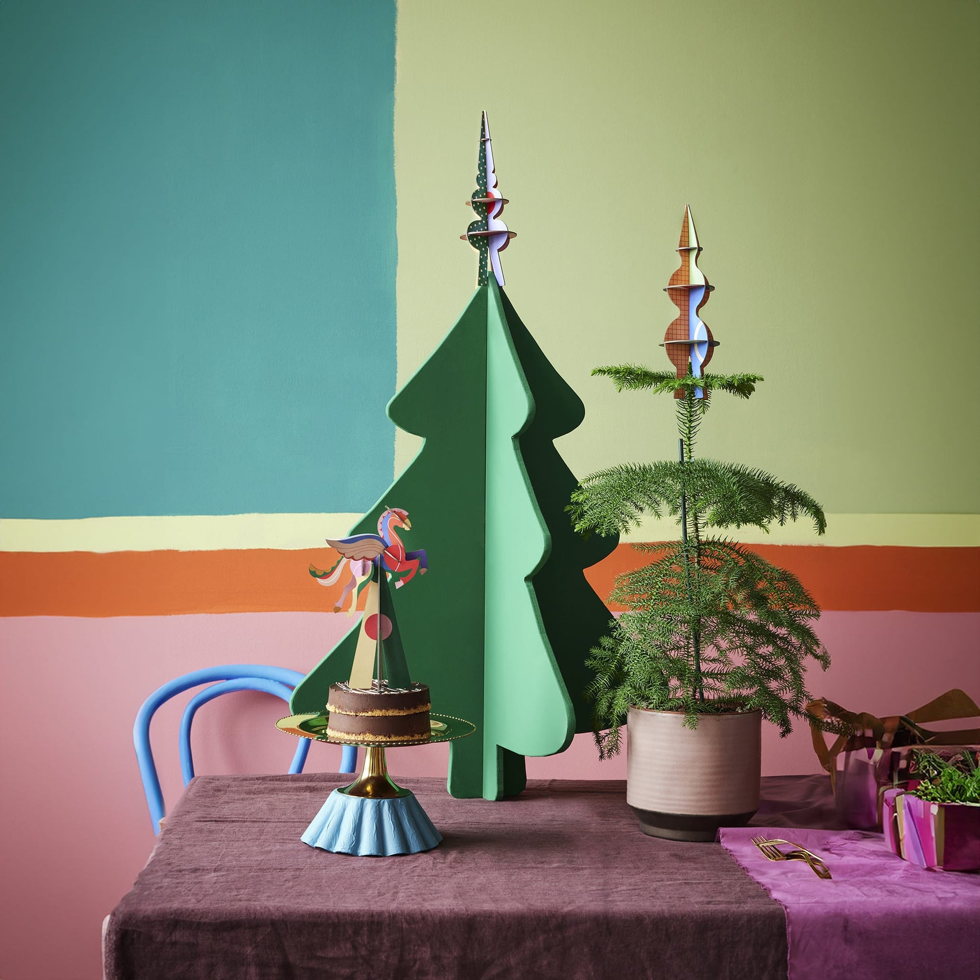 The Pegasus Festive Set by Studio Roof brings a touch of magic to your holiday decor with its imaginative design. This set of three 3D pegasus ornaments, made from recycled cardboard and printed with vegetable inks, adds a sustainable and creative flair to your Christmas tree.