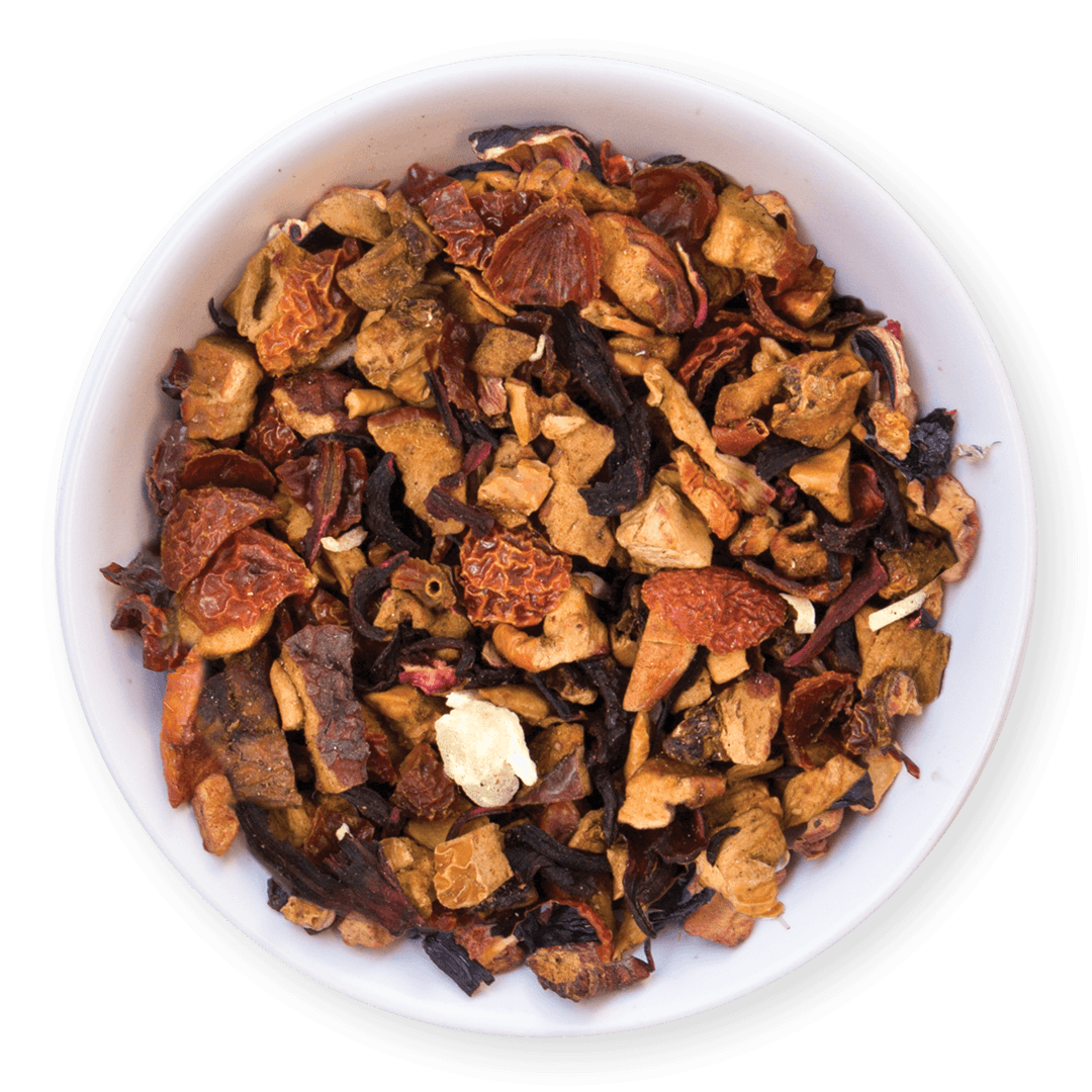 Juicy pineapple and creamy coconut blend with tart rosehip and hibiscus to create a herbal infusion reminiscent of a pina colada!