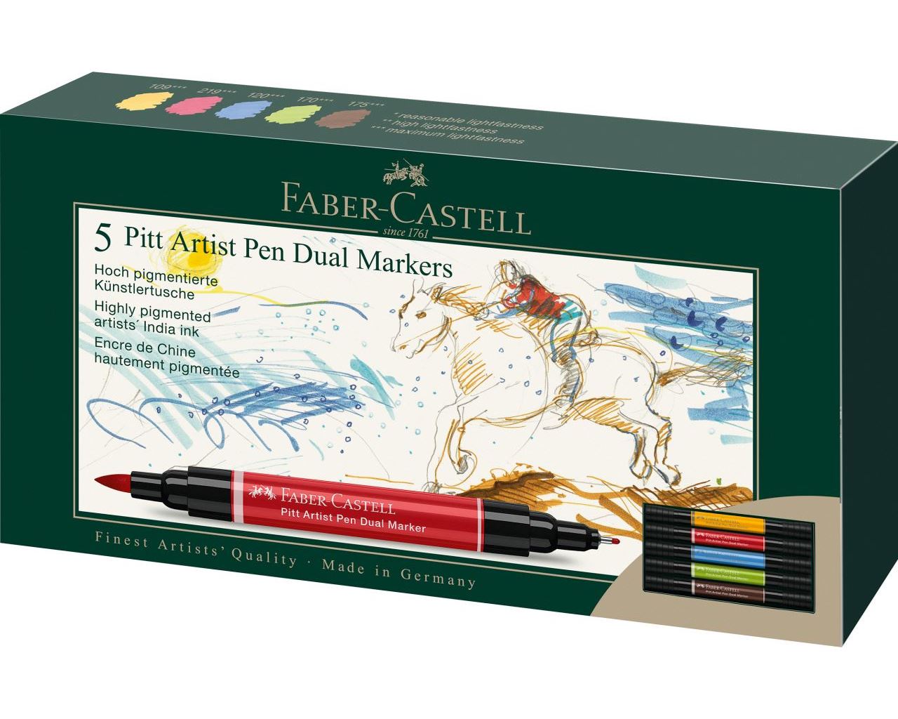 Ink drawings have a very long artistic tradition. This has always been an interesting medium for artists and graphic artists, it lends drawings expression and durability and can also be combined with many other drawing techniques. Faber-Castell has combined all the advantages of artist's inks with the benefits of a modern, easy-to-use pen - the Pitt Artist Pen. The pigmented and very lightfast drawing ink is ideal for sketches, drawings, layouts, fashion design and illustration.