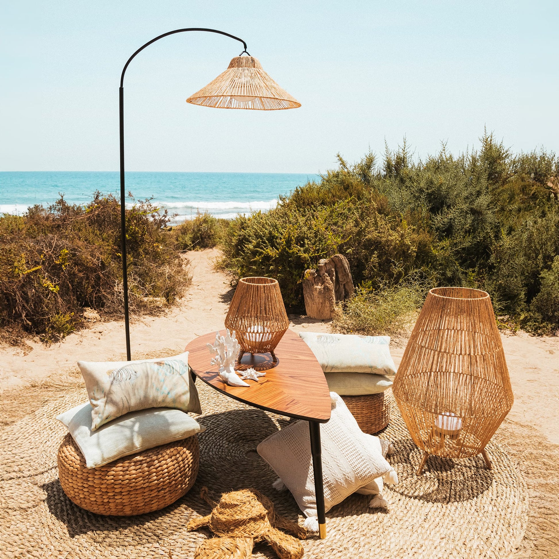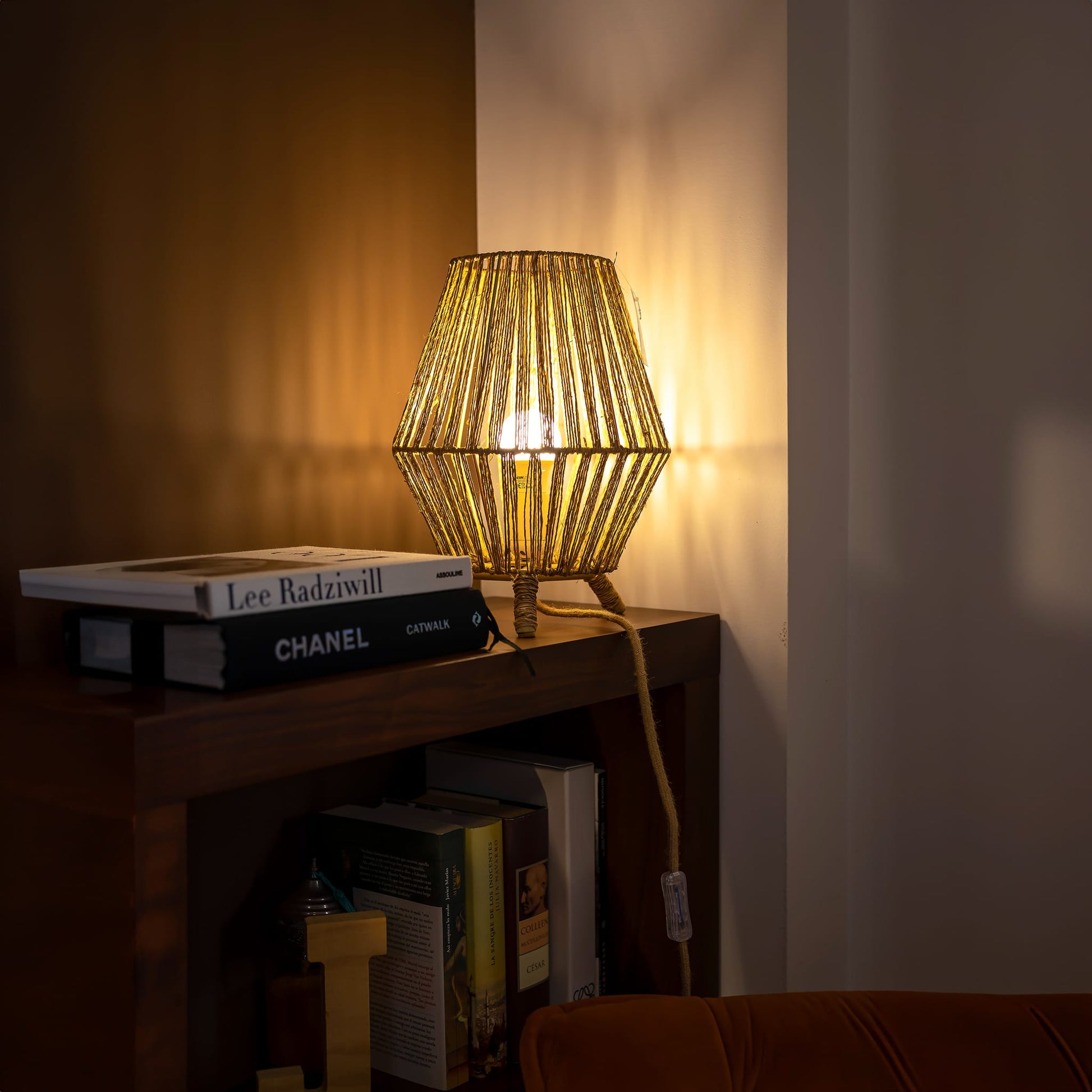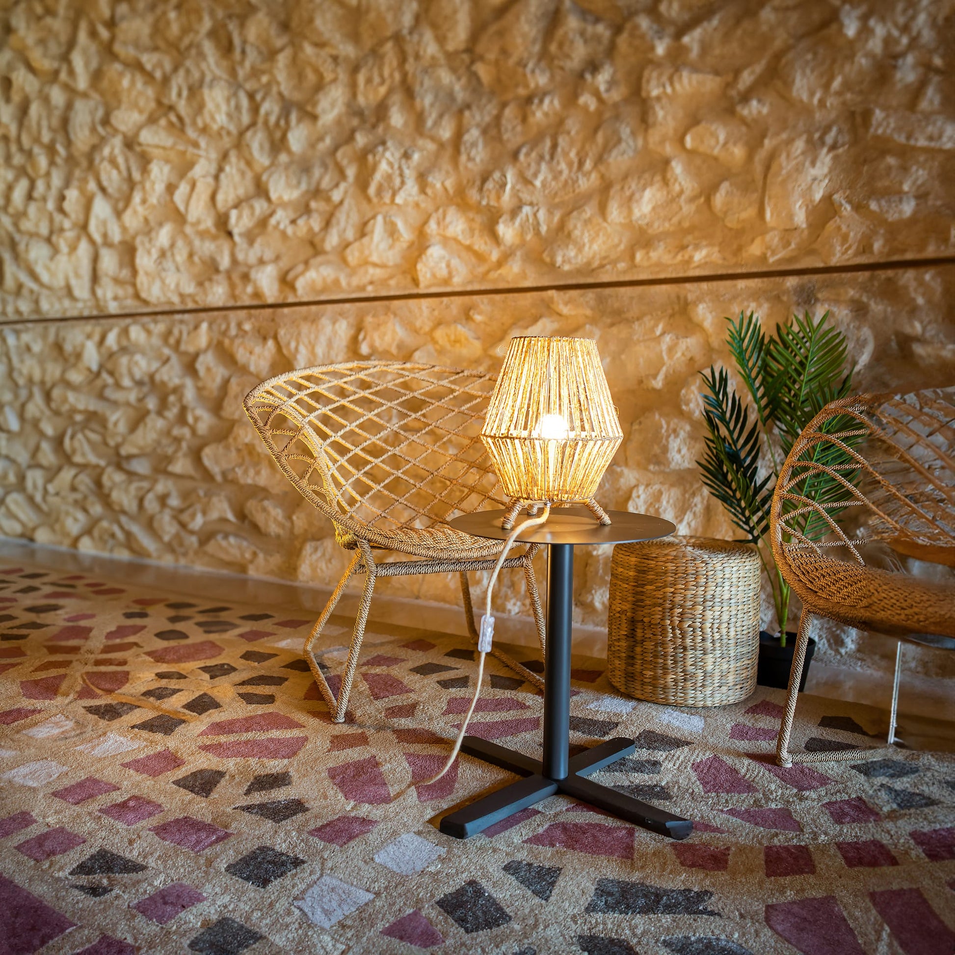 INDOOR ONLY: the Sisine decorative lamp is hand braided with natural fibers. This lamp is the perfect complement to illuminate any space in your home giving it a natural touch.