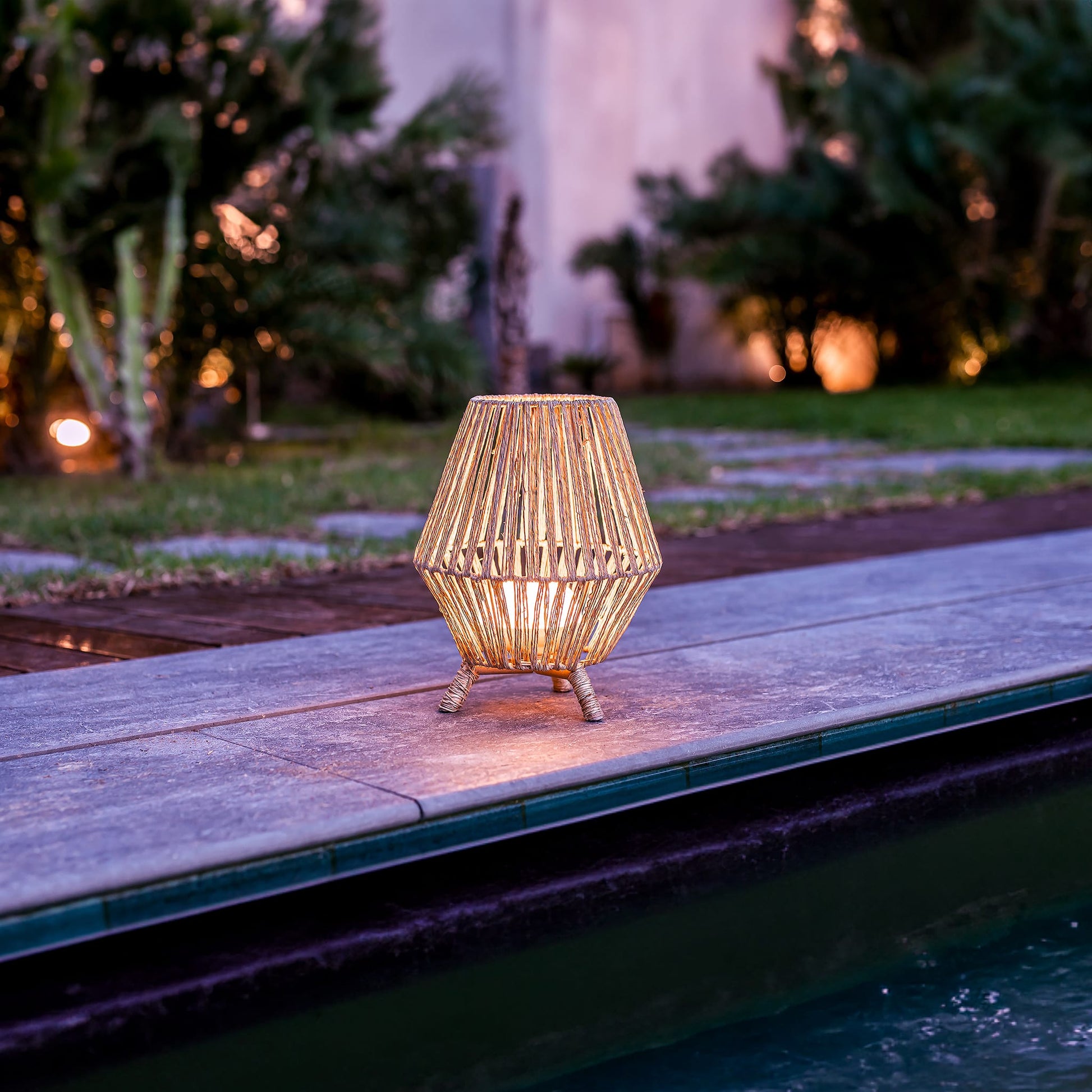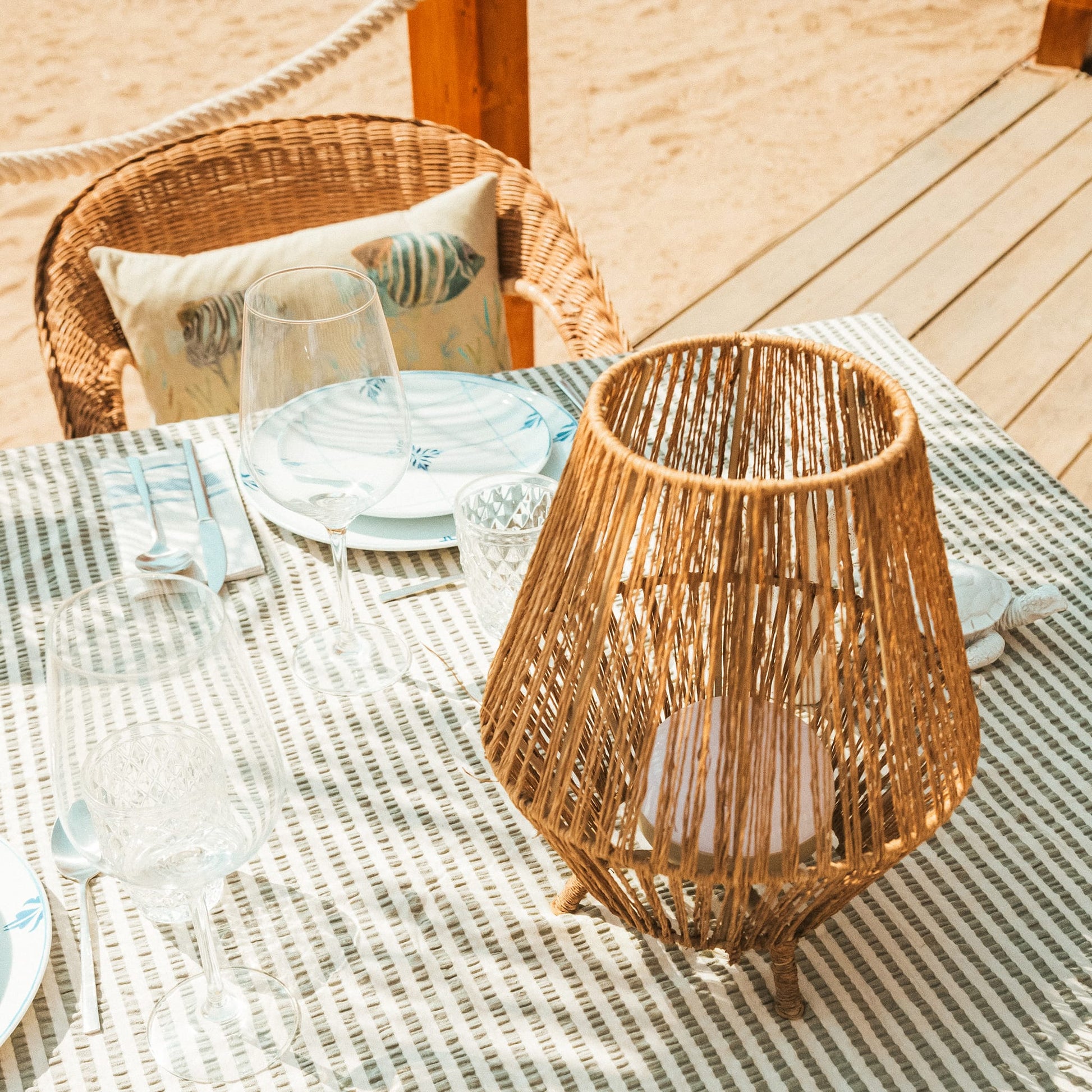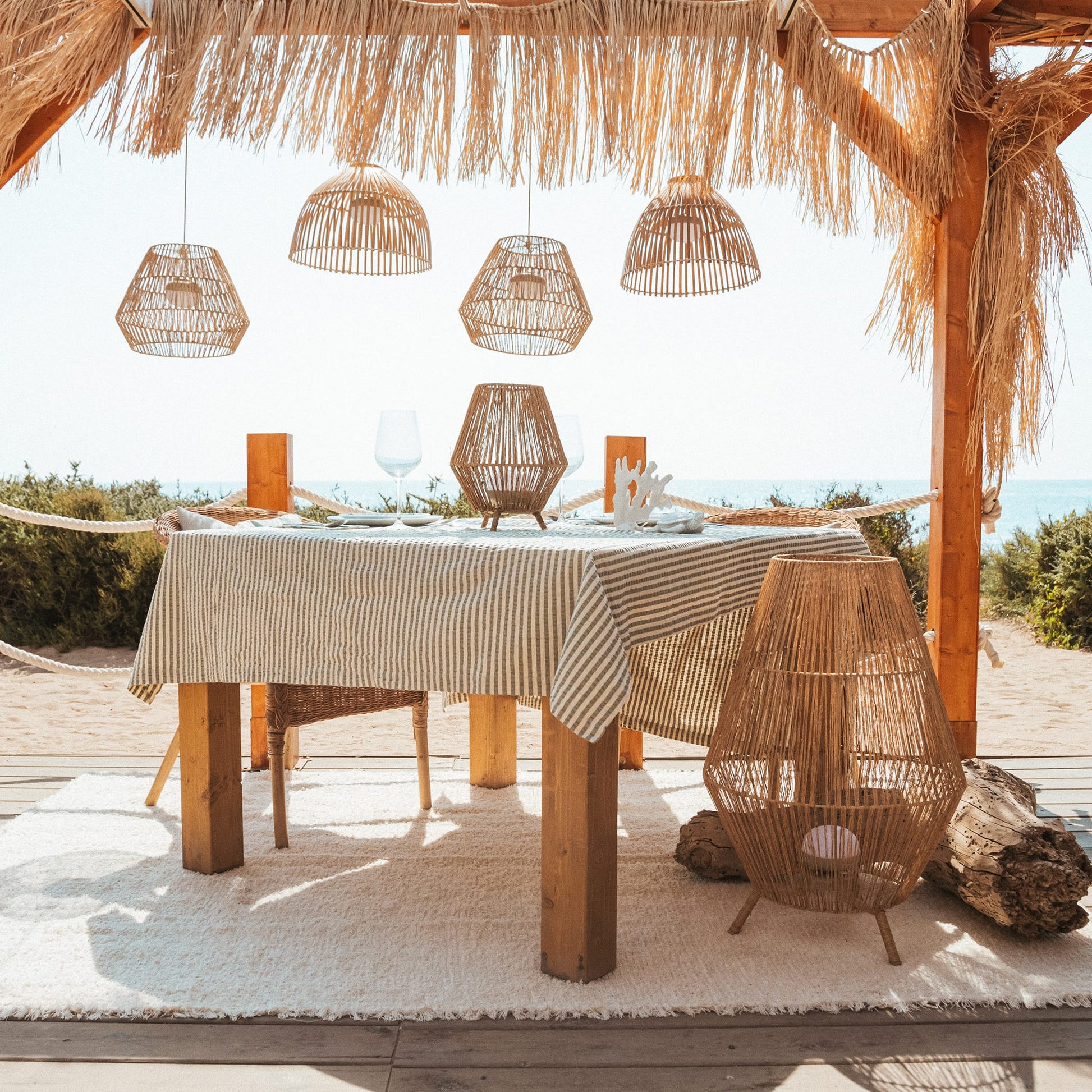 INDOOR ONLY: the Sisine decorative lamp is hand braided with natural fibers. This lamp is the perfect complement to illuminate any space in your home giving it a natural touch.