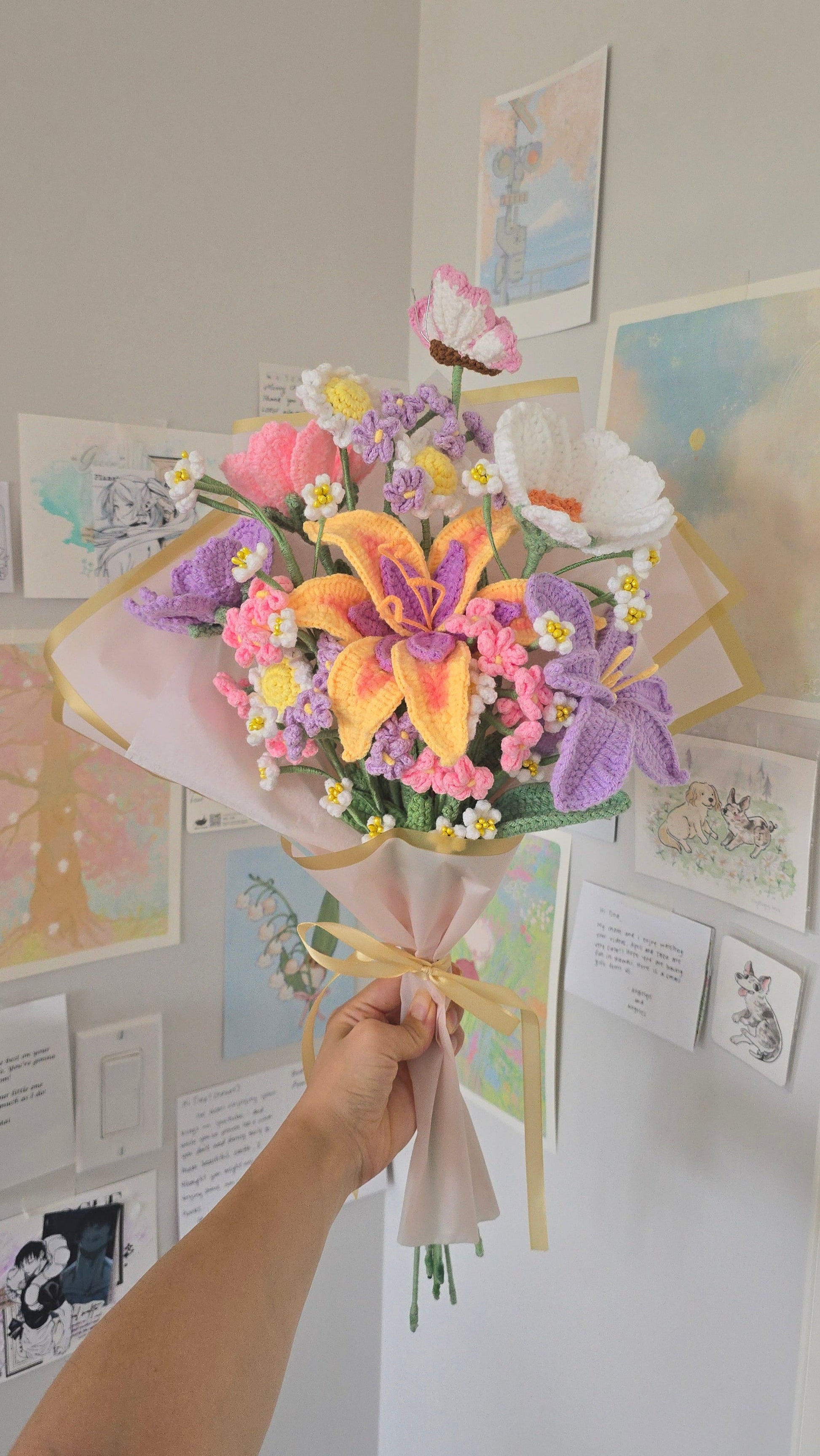 Note that due to color differences and yarn availabilities, color may vary slightly! Each flower is carefully handmade by me, and may also vary slightly in how they look!
