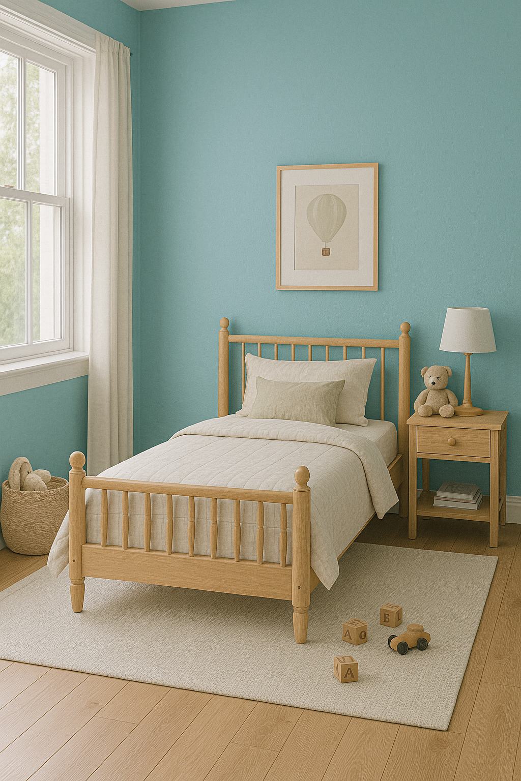 Fresh and invigorating, Rivulet captures the playful shimmer of a flowing stream. A blue-green that feels alive with movement, it brings energy to kitchens, creative studios, or children’s rooms. Pair it with natural woods and creamy whites for a palette as refreshing as a morning breeze.