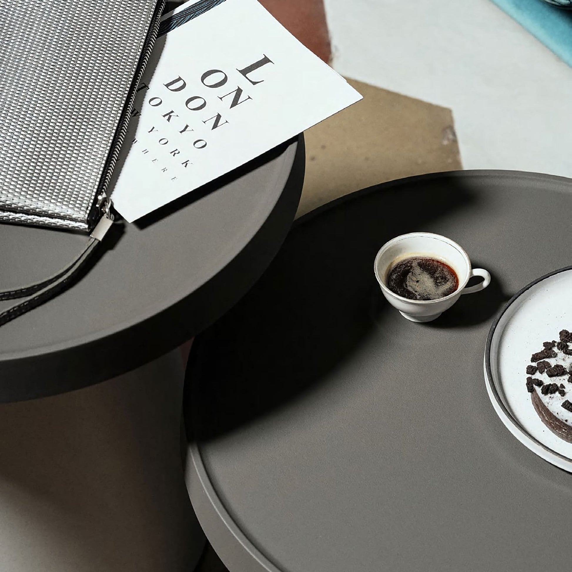 Thick Top by TOOU Design, a name that is almost an onomatopoeic sound, a shape designed for the interior and the exterior alike, in two different heights that make it a versatile and flexible object. The two heights are suitable for different uses, such as a table or even as a valet stand, to be placed freely around the house, in the garden, in public spaces, or in restaurants. The slight grooves and the proportions of the top almost resemble a tray in size and maneuverability. Although the name refers to the considerable thickness of the top, the object sports at the same time unexpectedly lightweight and easy of handling, thanks to the clever use of materials.