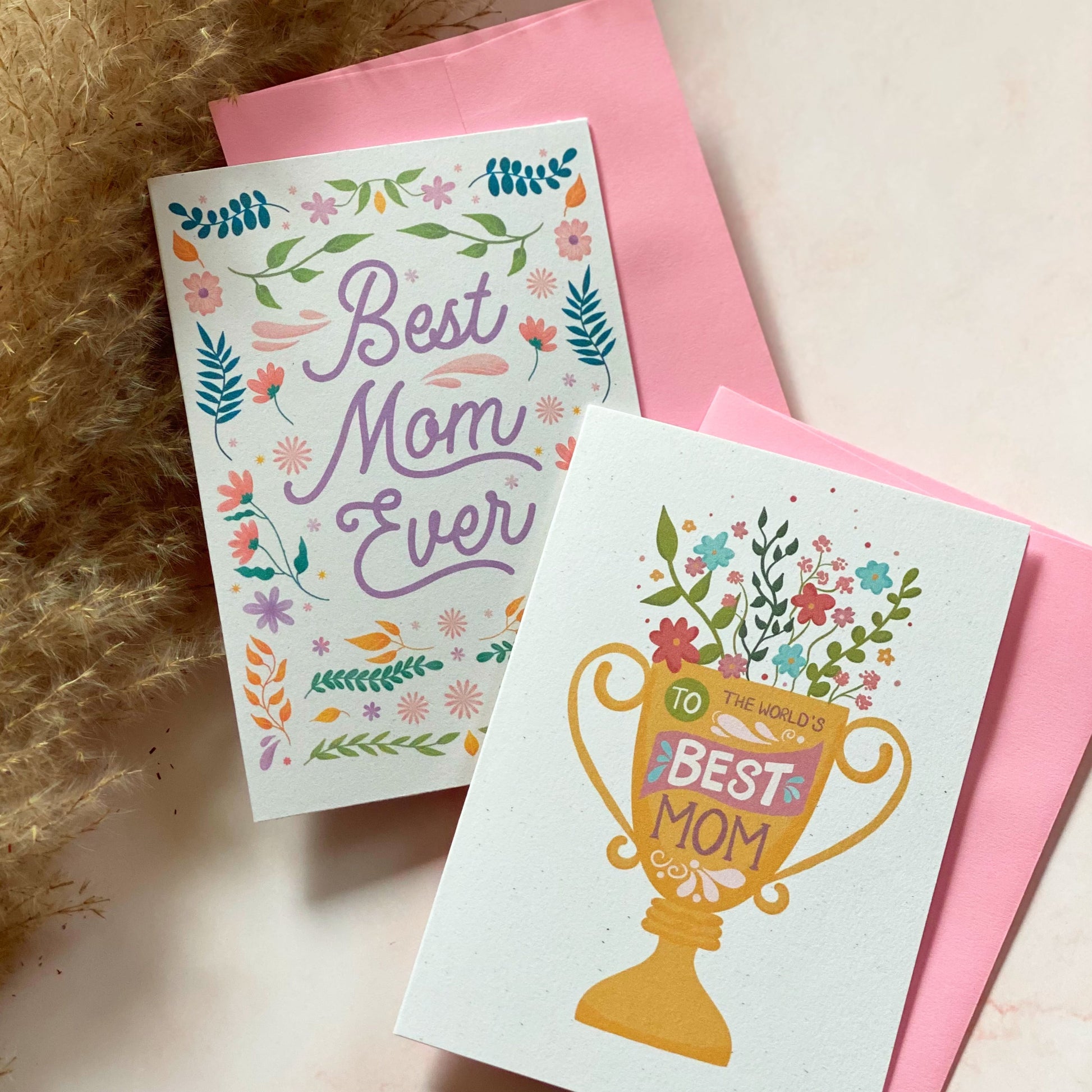 Show your mom she's a winner with our To The World's Best Mom Mini Greeting Card. Featuring a hand drawn illustration and a pink envelope for easy gifting. Because your mom deserves the best.