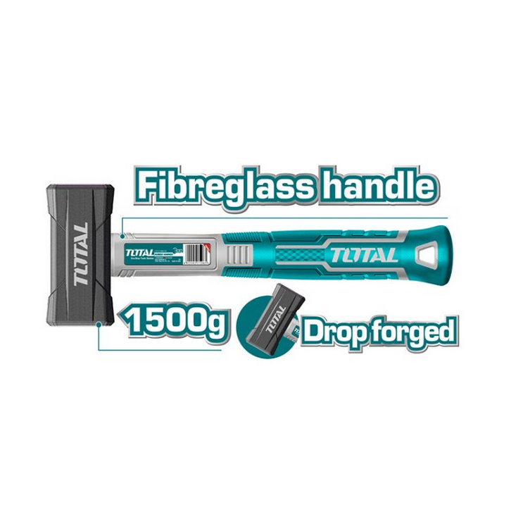 The Total Tools - 53Oz Stoning hammer is made with high quality 45# carbon steel and drop-forged for durability, it also features a heat-treated unique design hammerhead for precision and control. The fiberglass handle reduces vibration for comfortable use. With a weight of 1500g, this stoning hammer delivers maximum power with every swing.