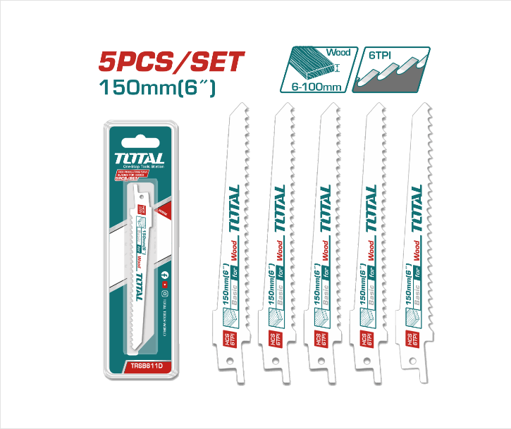 Total Tools - 5PCSX6" Reciprocating saw blades for wood set