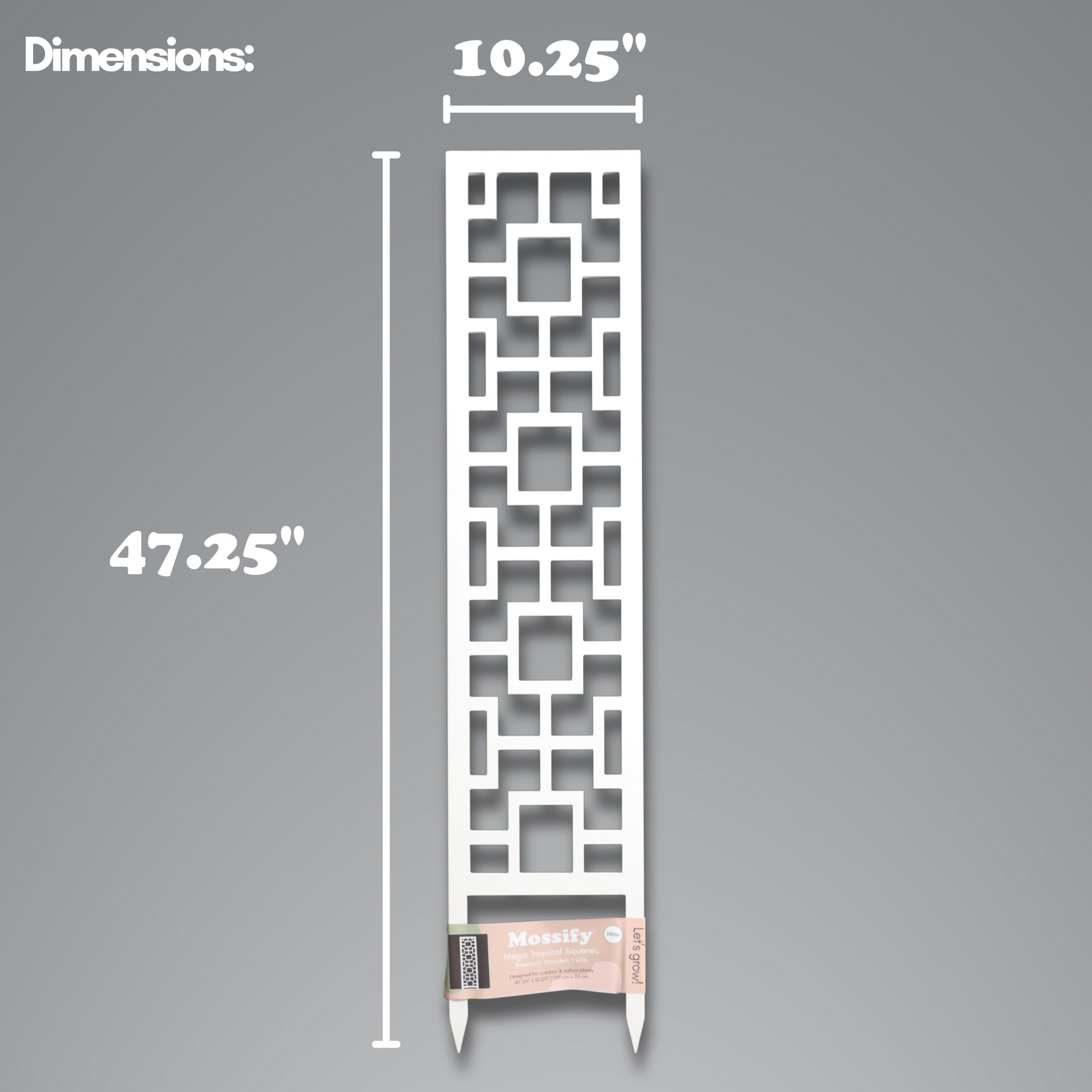 For larger plants that need more vertical space, the Mega Tropical Squares Wooden Trellis stands at 47.25 inches tall and 10.25 inches wide, making it a solid choice for Clematis, Black-Eyed Susan Vine, Passionflower, and Mandevilla. Its taller frame allows climbing plants to develop naturally while keeping them neatly contained in garden beds, patio planters, or oversized indoor pots.