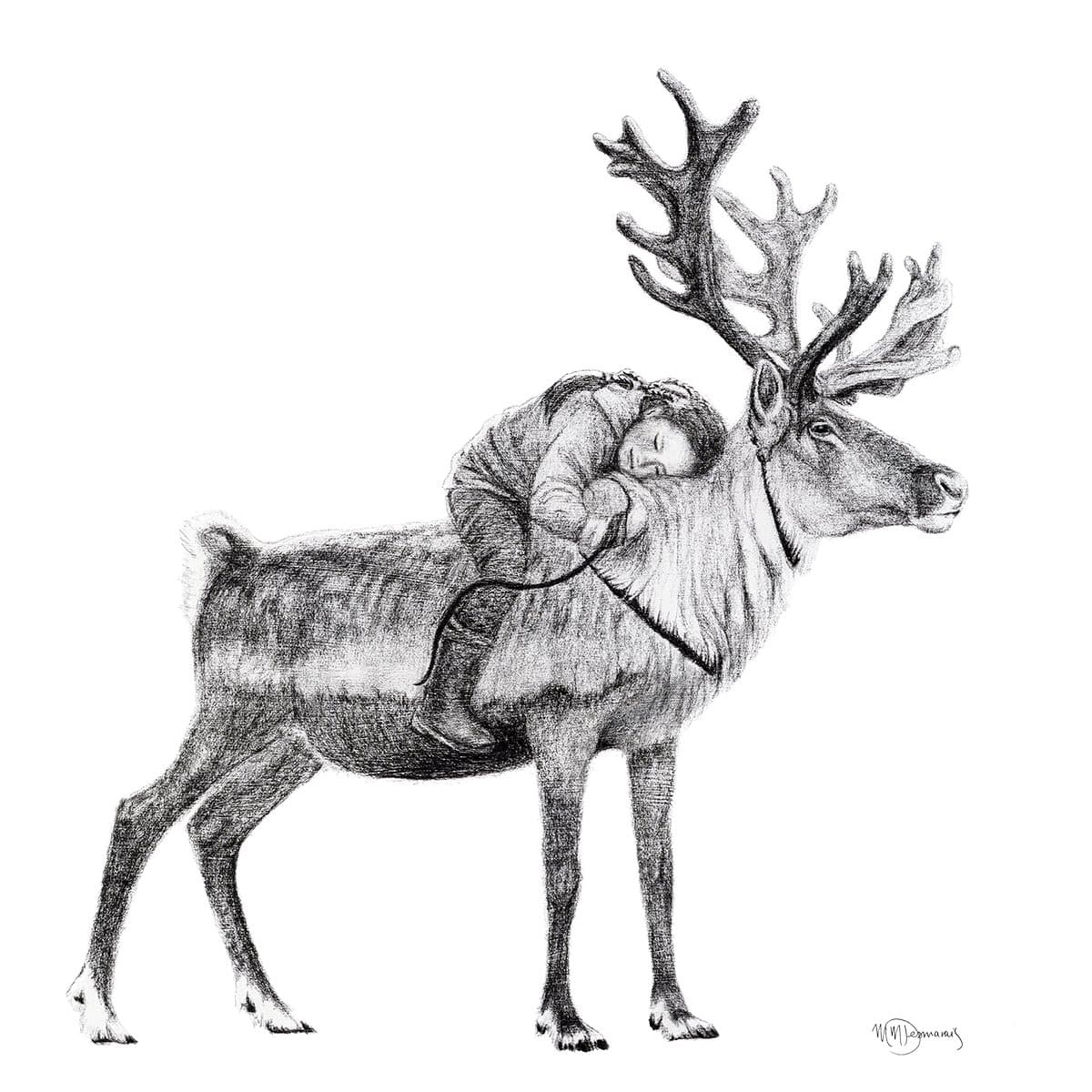 Tsaatan Girl with Reindeer illustration - "Social Animal" Collection